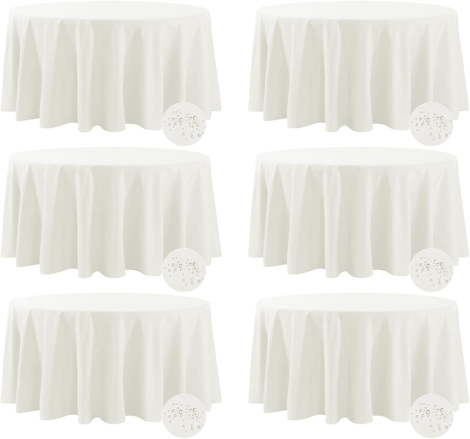 Fokitut 6 Pack Waterproof Round Tablecloth, 132 Inch, Stain Resistant and Wrinkle Polyester Table Cloth, Fabric Table Cover for Kitchen Dining, Wedding, Party, Holiday Dinner-Ivory