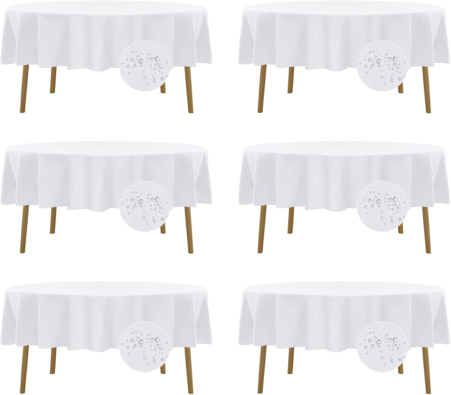 Fokitut 6 Pack Waterproof Round Tablecloth, 70 Inch, Stain Resistant and Wrinkle Polyester Table Cloth, Fabric Table Cover for Kitchen Dining, Wedding, Party, Holiday Dinner-White