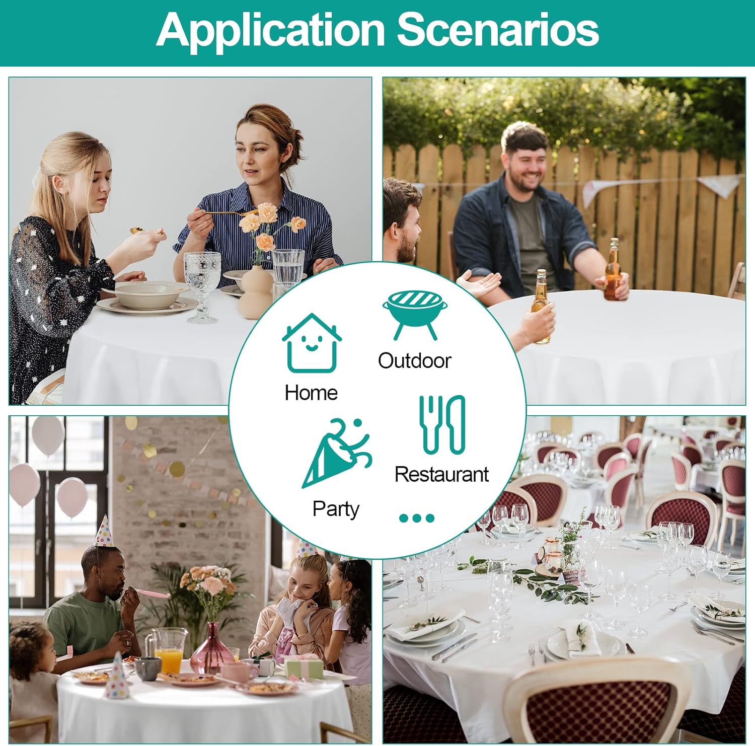 - 【Packing and Dimensions】Please measure the size of the table carefully before purchasing. You will get 6 pack white tablecloth in one order. Each table cloth is 132 inch in diameter