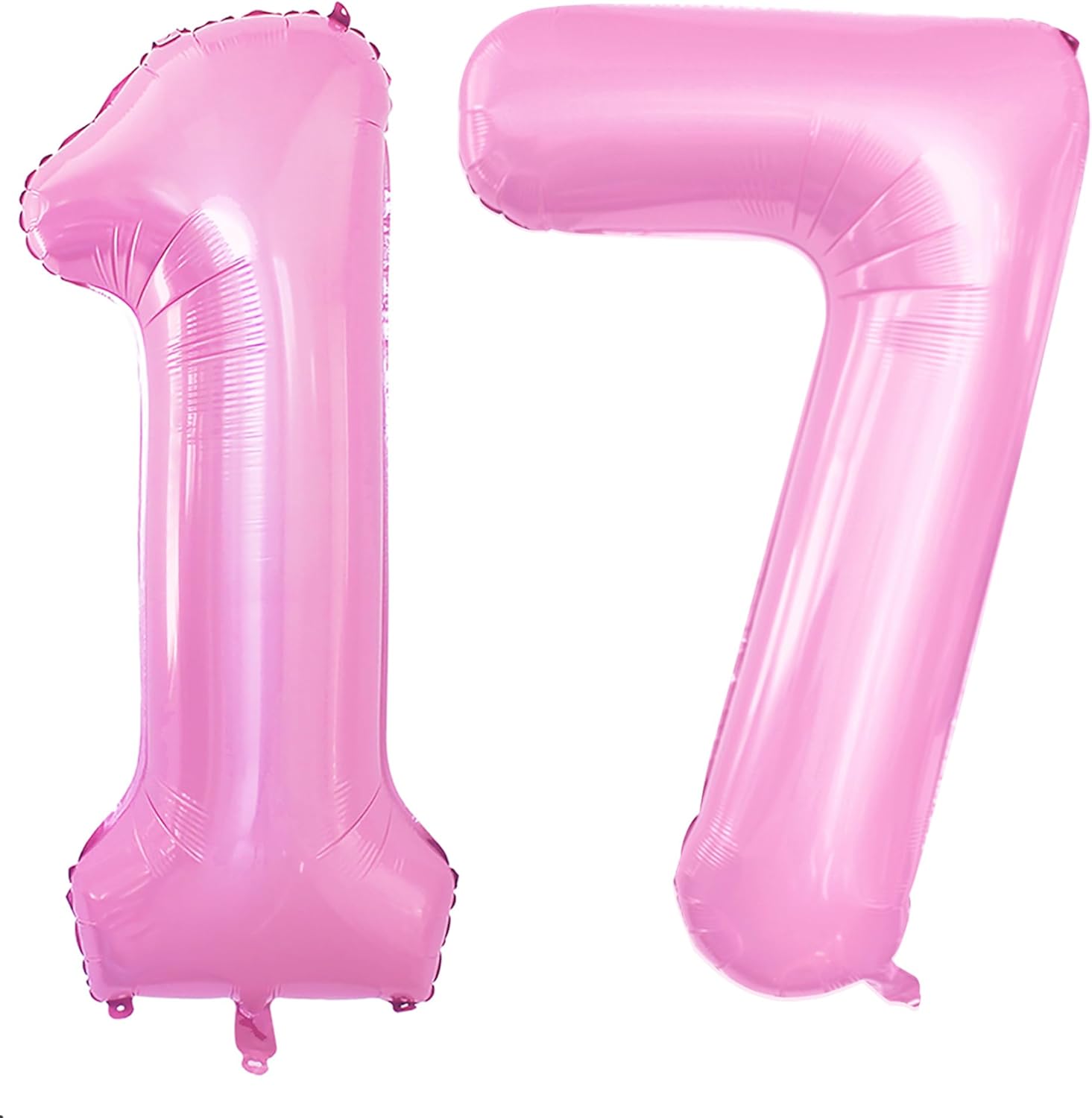 GOER Number 17 Balloons for 17th Birthday Sweet 17 Party Decorations,42 Inch Jumbo Foil Helium 71 Balloons for 71st Birthday Party Decoration (Light Pink)