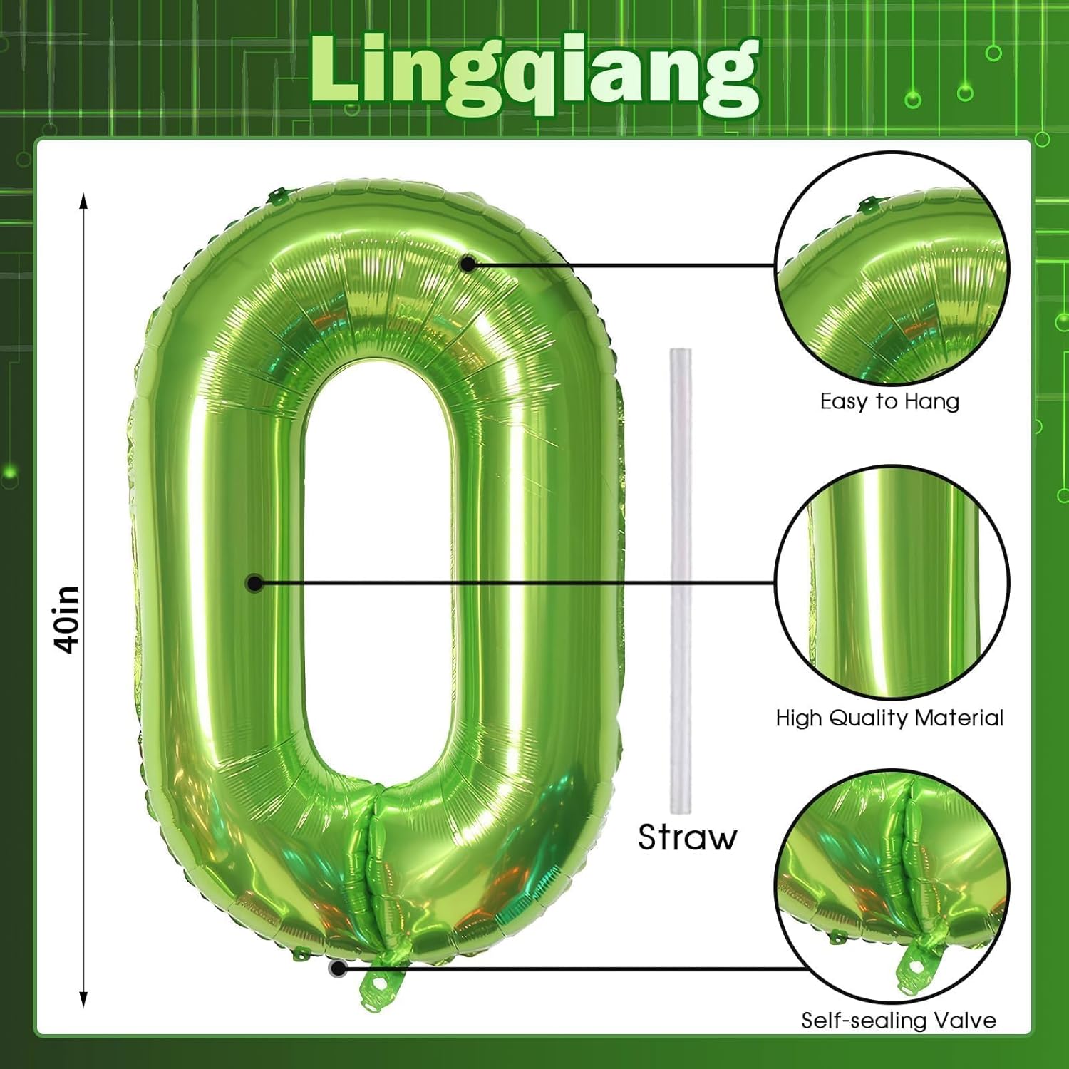- 🎉 Green Number 0 Balloon 🎉 - You will get 1pc 40 inch mylar foil number 0 balloon and 1pc straw. Perfect for 10th 20th 30th 40th 50th 60th 70th birthday or anniversary party decorations supplies.