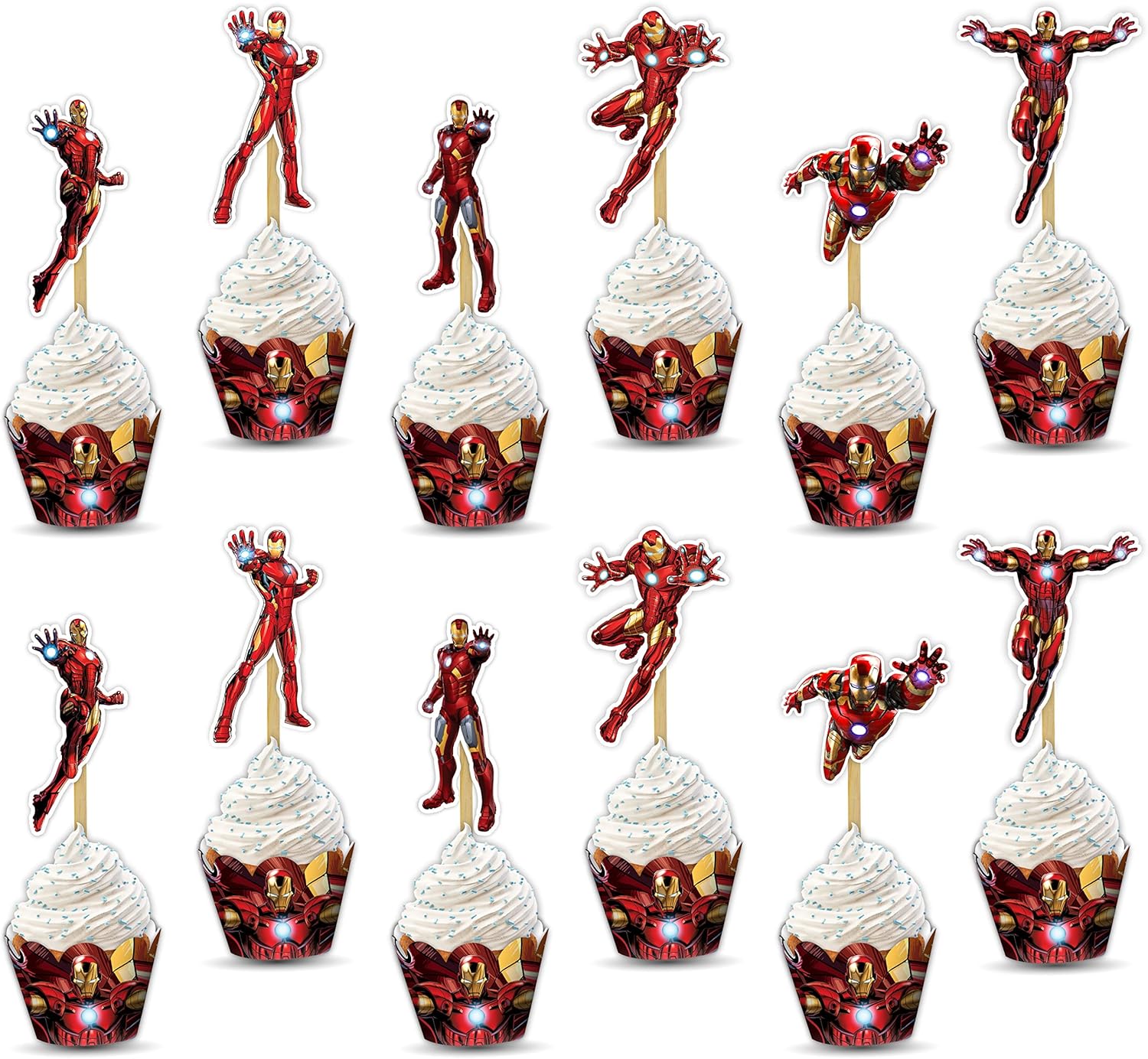 "Irn Man Cupcake Wrapper – Theme Birthday Party Supplies – Cartoon Inspired Cupcake Decoration Wraps for Birthday, Baby Shower, School Events, and Themed Parties"