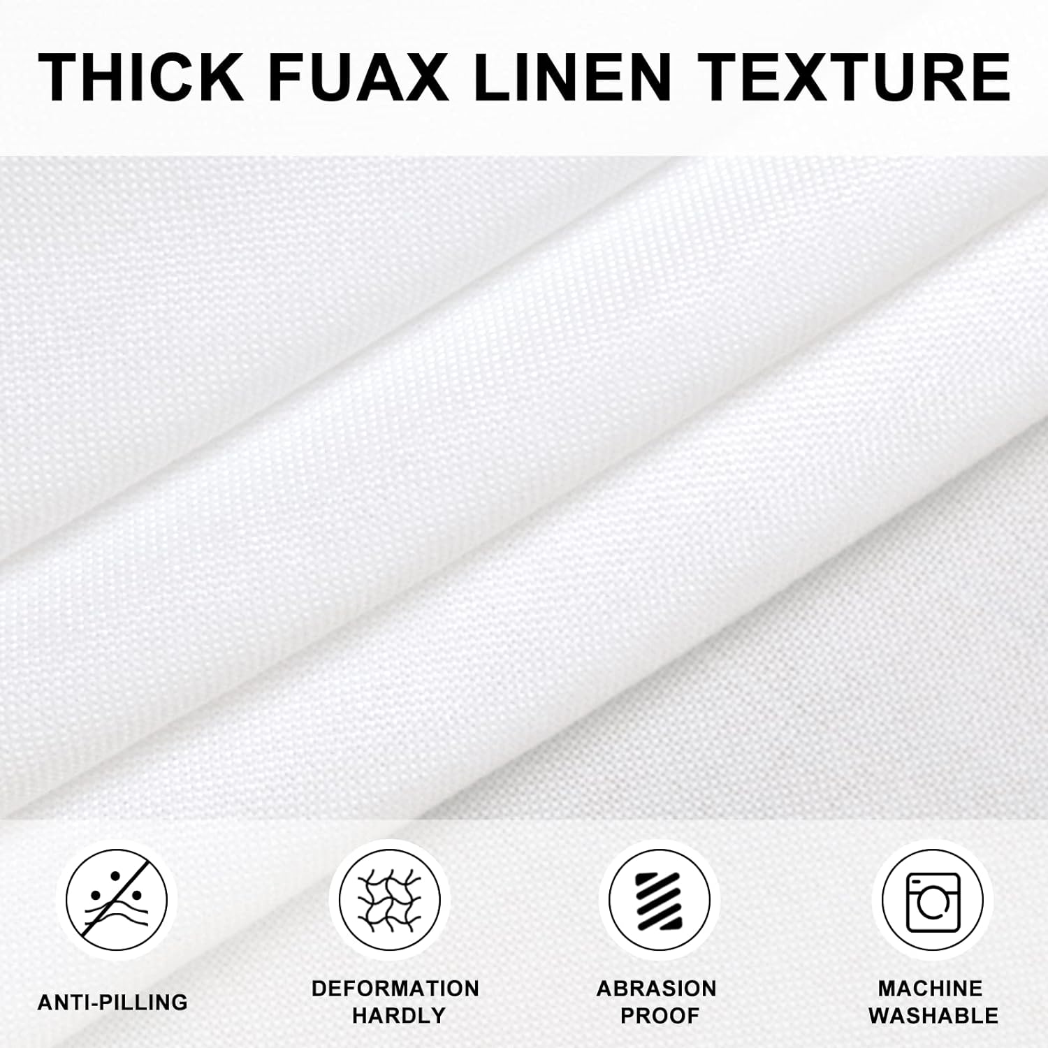 Hiasan Round Linen Table Cover 50 Inch - Wrinkle and Stain Resistant Washable Polyester Fabric Table Cloth for Dining Room Kitchen Party, White