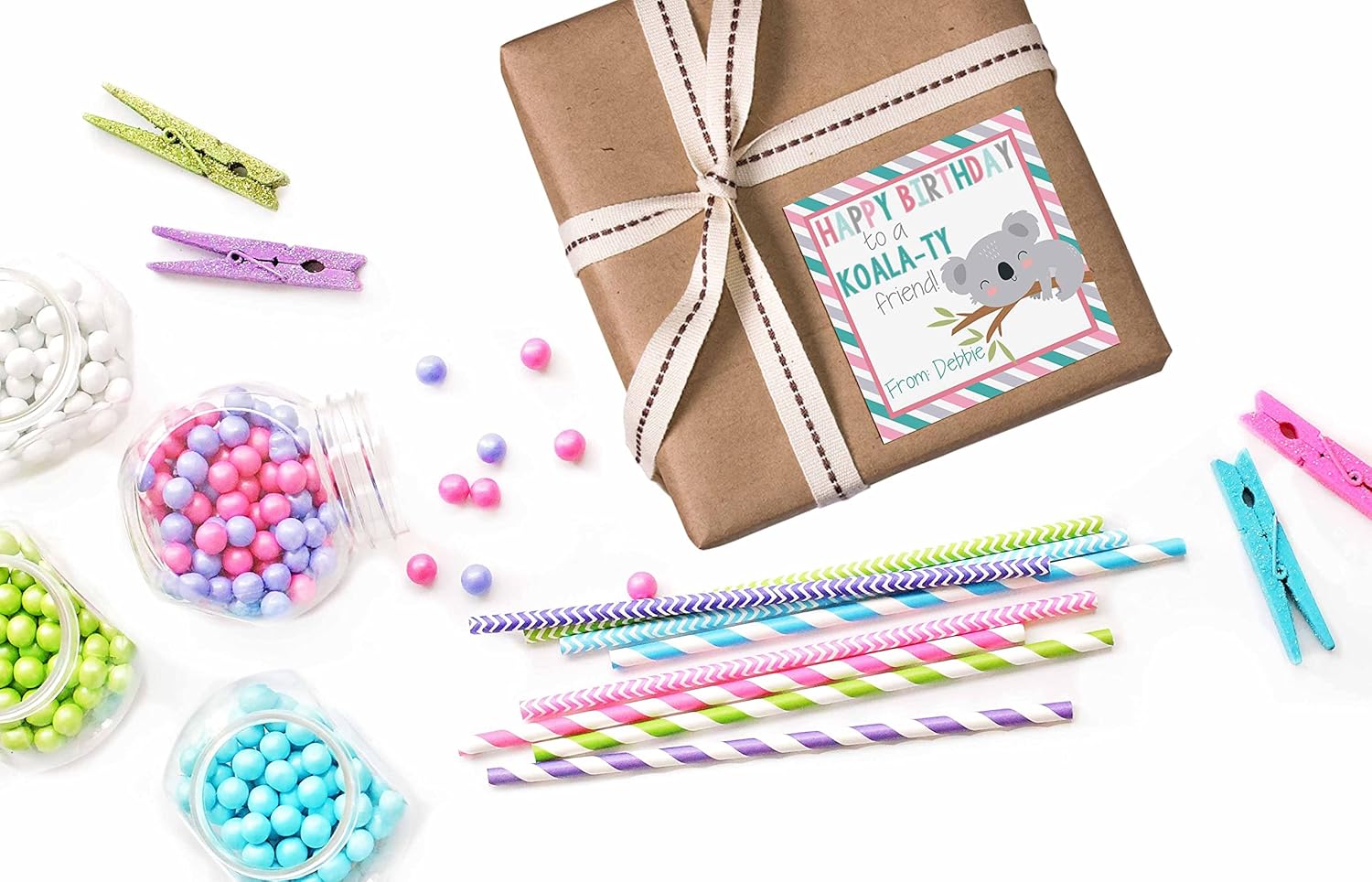 - Awesome Quality: Forget smaller, chintzier labels printed on flimsy paper. At 2.5” your Cute Koala Gift Tag Stickers are bigger & sturdier than most. Plus, they're printed on 60# stock for ultra-quality.