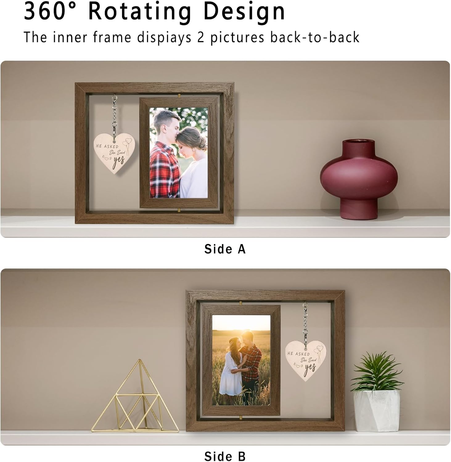 - Sturdy Wood Material: 360 Degrees rotating floating picture frames are made of lightweight wood with a unique design vintage wood texture finish and real glass cover, making a quality engagement gift that enlightens & inspires life