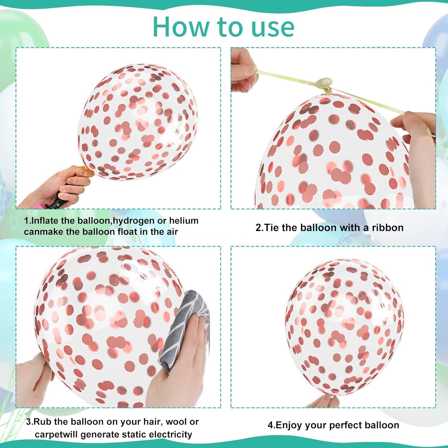 - 50 PCS LATEX BALLOONS: The set includes 11 green, 4 green confetti, 4 blue confetti, 10 teal blue, 10 white, 11 blue balloons, plus 1 ribbon. Adds extra fun to any party.