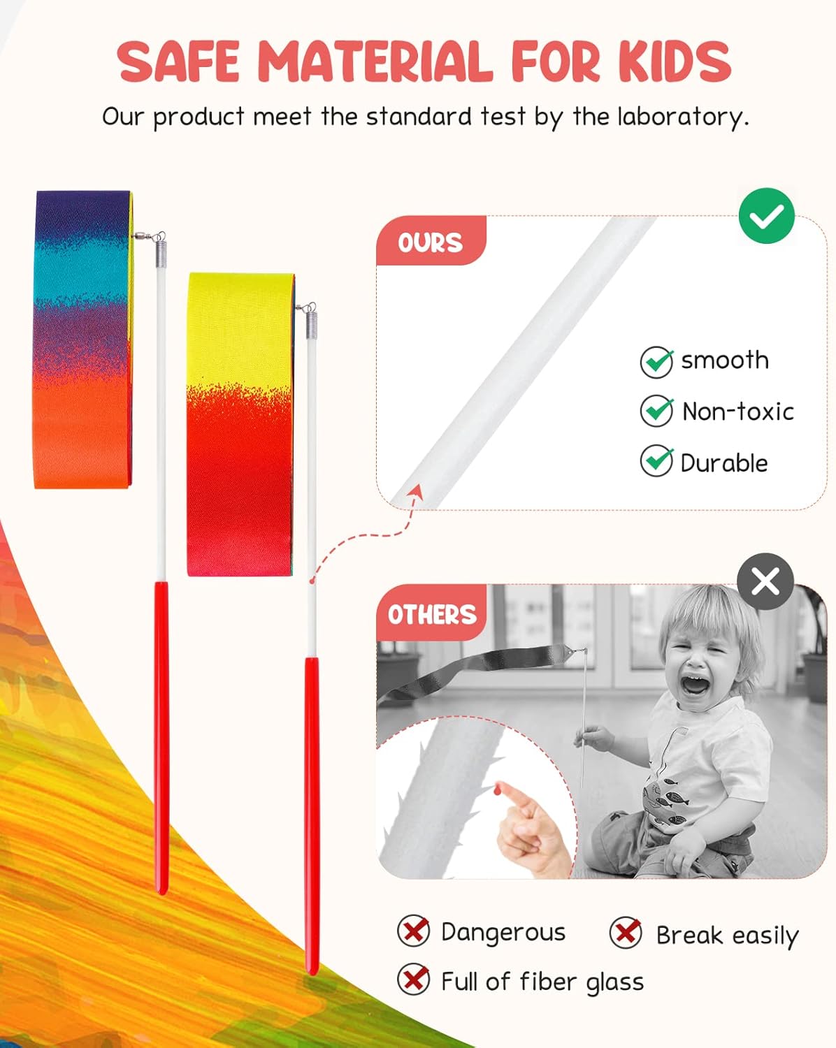 - Excite and Enrich Kids'Life:The dance ribbon is excellent for promoting your child's creativity and imagination.They are not only developing children's intelligence, but also improving their physical ability