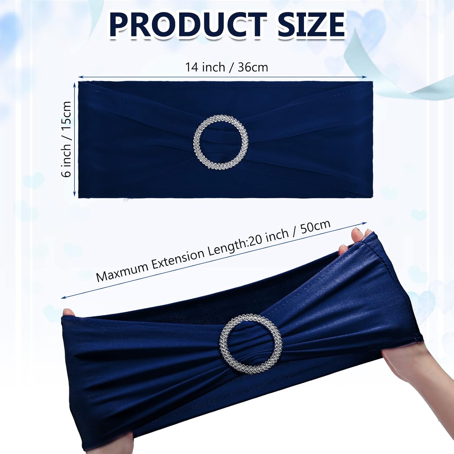 - Enough Quantity: 150 pieces chair sashes with buckle slider can meet your needs of various parties and activities; Each chair bands measures about 6 x 15 inches/ 15 x 36 cm, which is suitable for a chair of 13 to 20 inches, adding elegance to your banquet and a touch of sophistication to any formal occasions