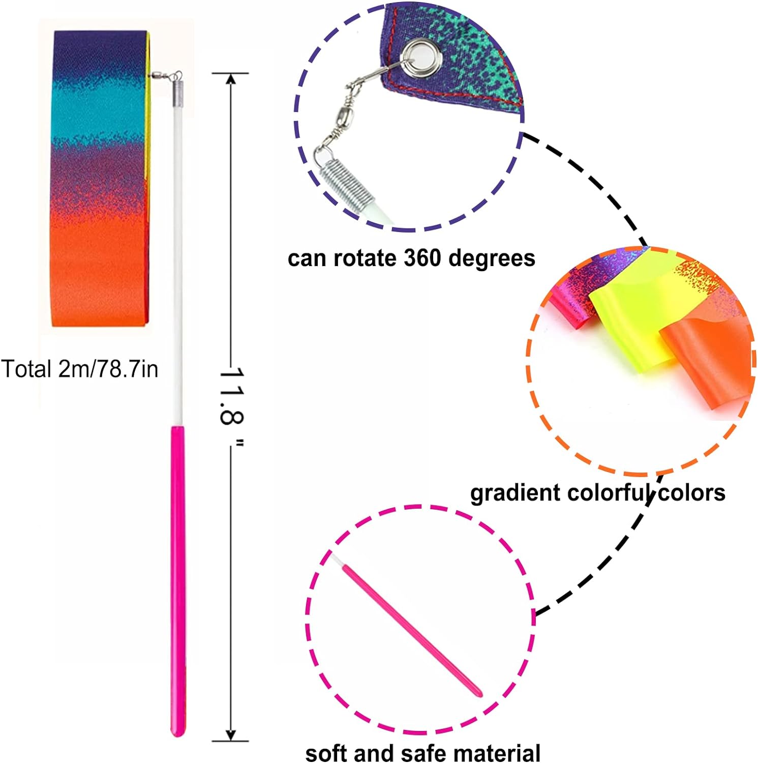 - 2 meters rainbow streamers is made of soft silk, smooth and reflective, smart and non-drawing. The sticks is made of fiberglass, the handshake has a non-slip coating, and all gymnastics can be done safely. Ribbon sufficient length :200cm/78.7 ", width :4.8cm/1.89 ", rod length :30cm/11.8 ". The spinning ribbon is too happy! It is satisfying to draw a pretty ribbon pattern in the air.