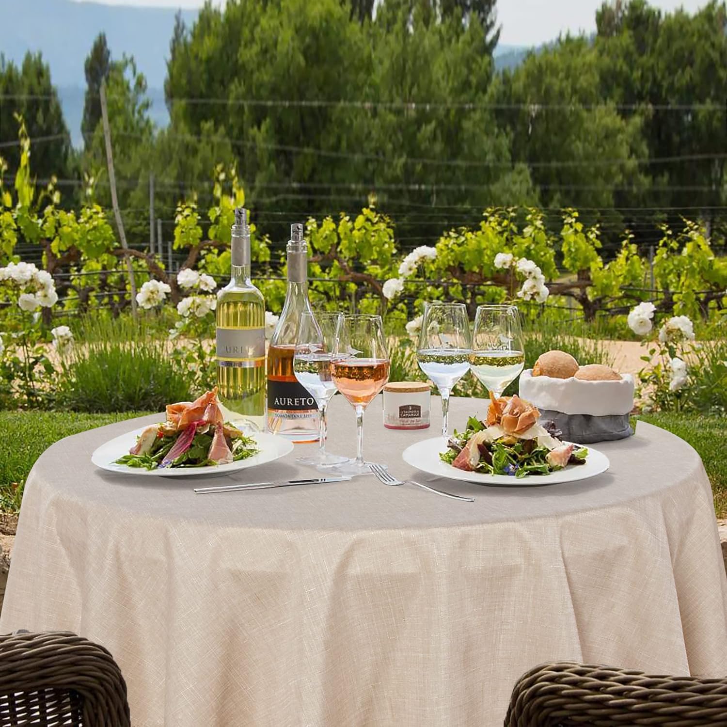 Fitable Faux Linen Textured Beige Round Tablecloths 60 Inches - 2 Pack Faux Burlap Table Clothes for Banquet, Party, Dining, Farmhouse, Outdoor (Great for 20"-48" Round Tables)