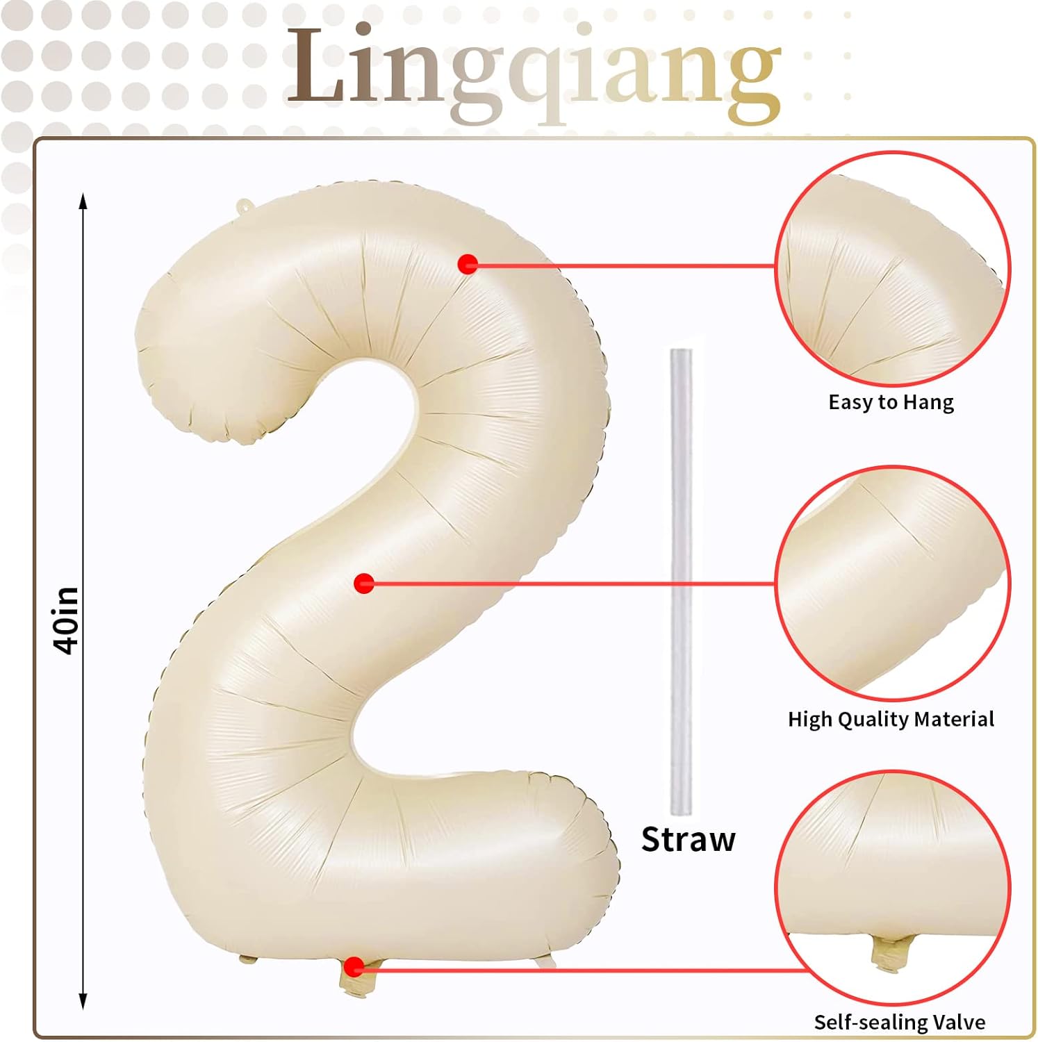 - 🎉 Beige Number 2 Balloon 🎉 - You will get 1pc 40 inch mylar foil number 1 balloon and 1pc straw. Perfect for 2nd 12th 20th 21st 25th birthday or anniversary party decorations supplies.