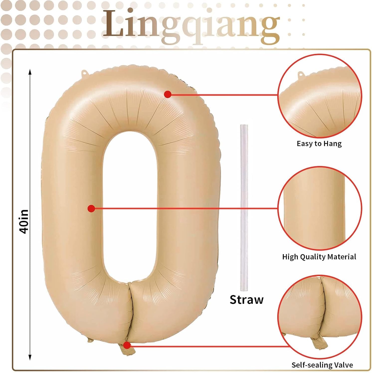 - 🎉 Easy to Inflate 🎉 - The big light brown number 0 foil balloons have self-sealing valve does not need to be knotted for easy inflation and deflation. It can be inflated with air or helium. When filled with helium, the balloons can float in the air; after filling, press the valve of the digital balloon to seal it. It can be reused. Do not throw away after use!