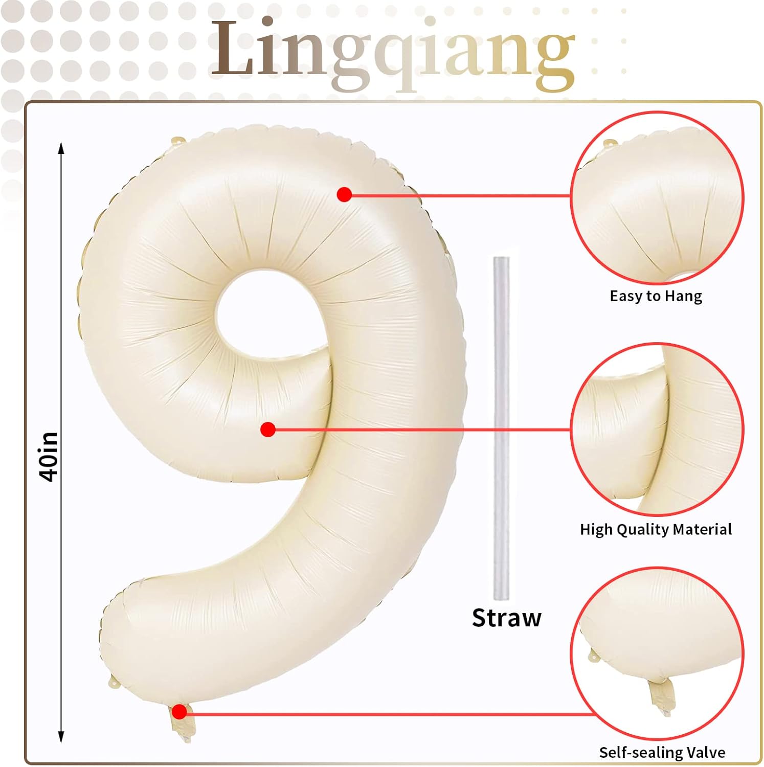 - 🎉 Beige Number 9 Balloon 🎉 - You will get 1pc 40 inch mylar foil number 9 balloon and 1pc straw. Perfect for 9th 19th 90th birthday or anniversary party decorations supplies.