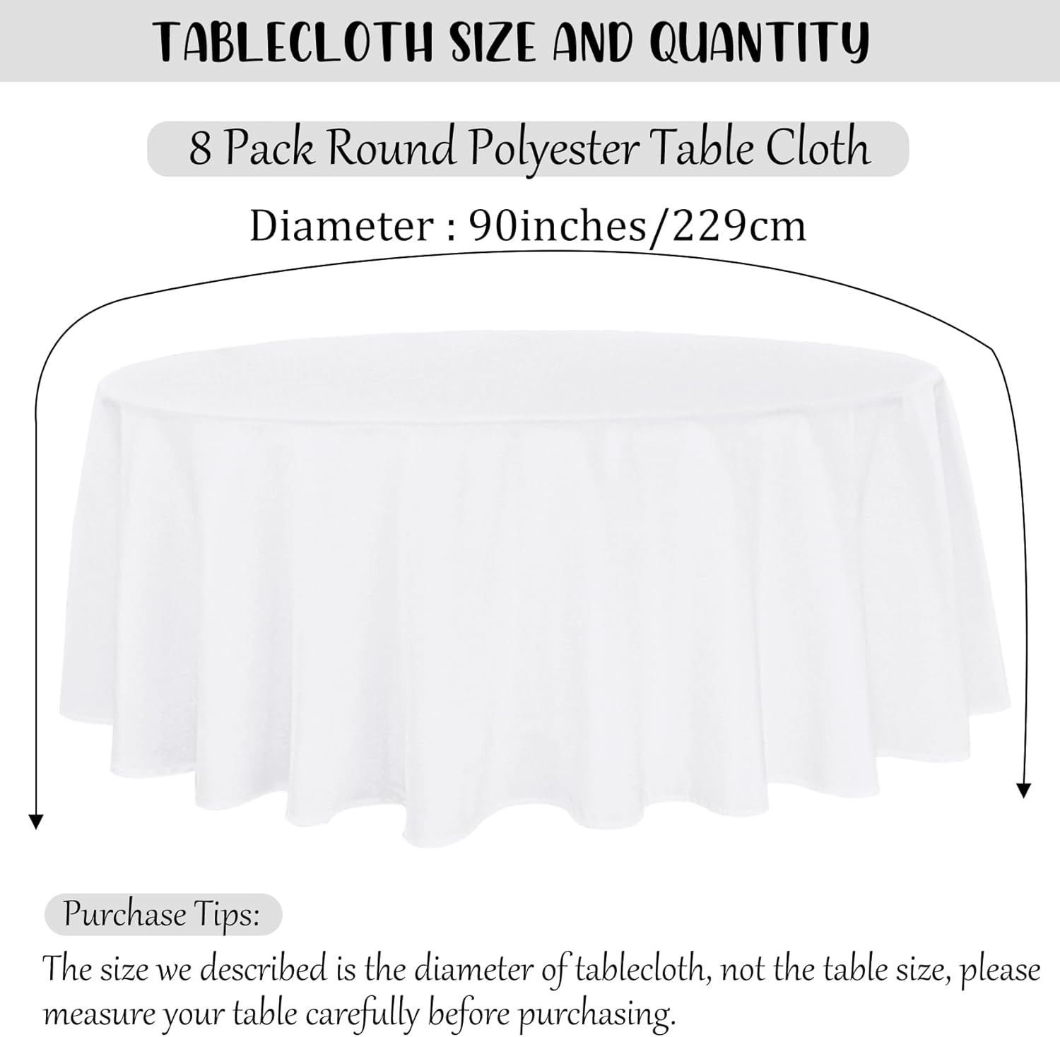 Fivenl 8 Pack Round Tablecloth 90 Inch Round Table Covers Bulk Washable Polyester Fabric Round Table Clothes for Wedding Party Reception Banquet Buffet Restaurant (White, 90 Inch)