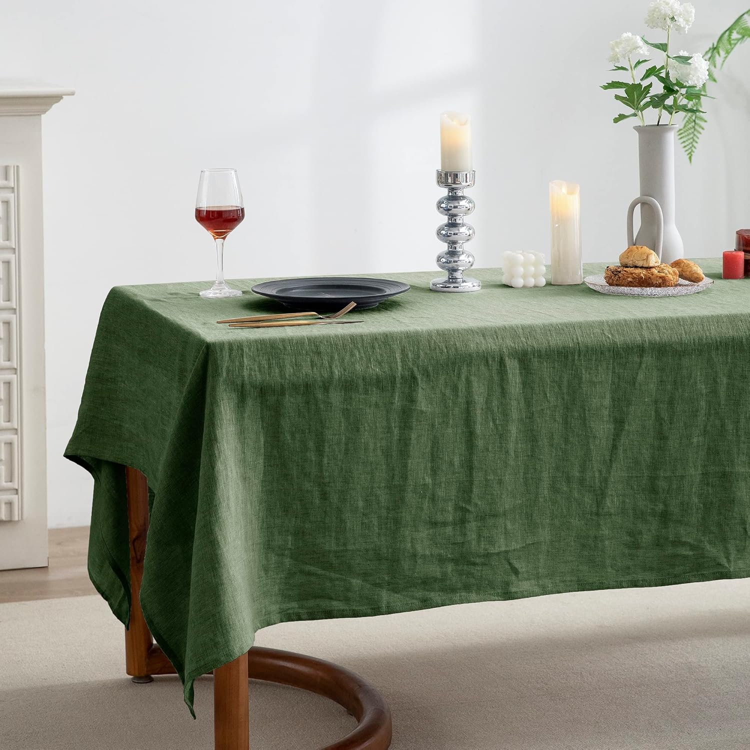 EVERLY 100% Pure Linen Rectangle Tablecloths 60x108Inches for Dining,Buffet Parties,Picnic,Events,Weddings and Restaurants,Decorative Halloween,Thanksgiving Machine Washable Tablecloths-Green
