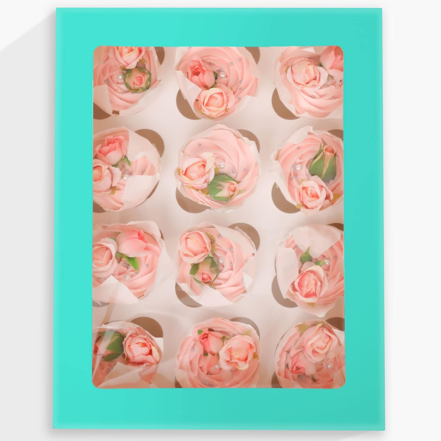 - (1)Size:Mint Blue/10pcs/13*10*3.5inch, multifunctional bakery cupcake box.