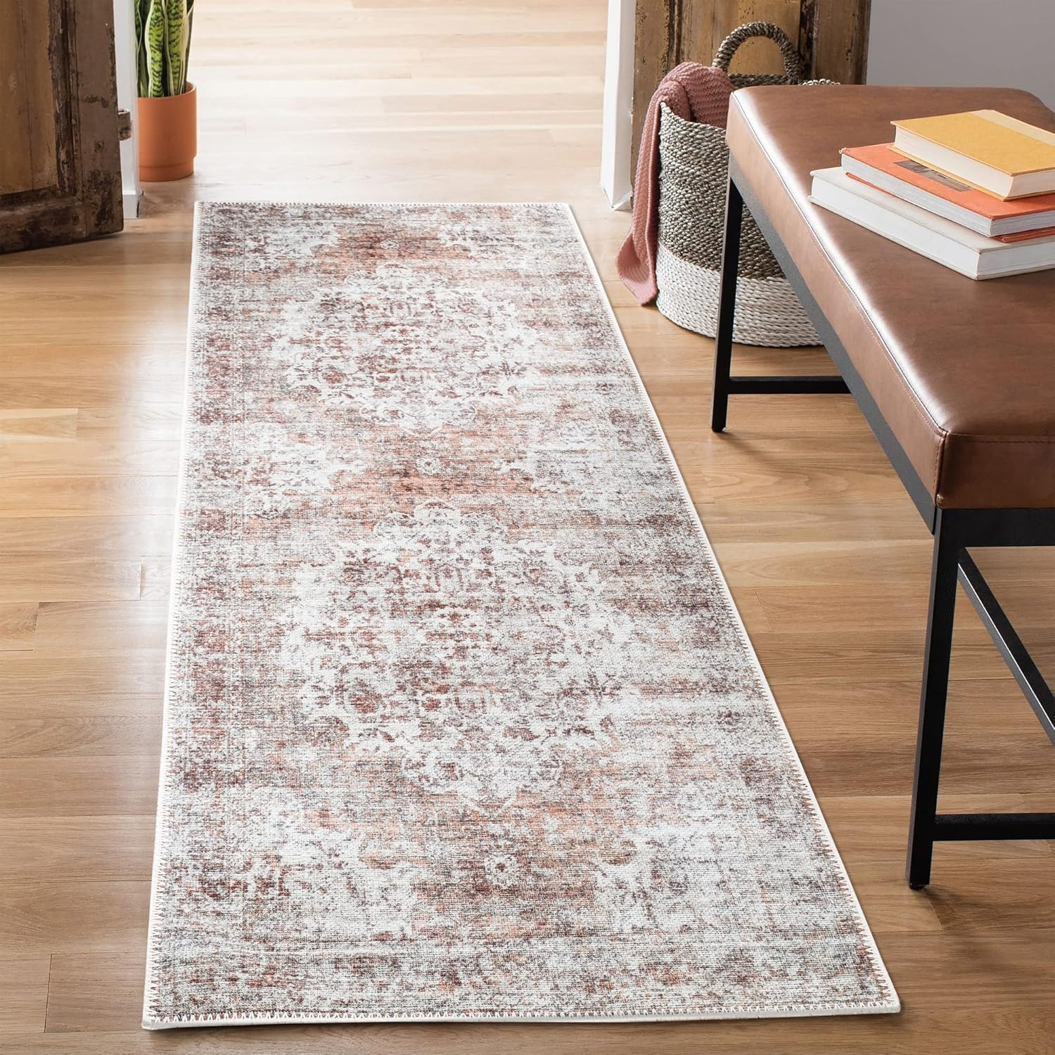 Bloom Rugs Washable Non-Slip 7 ft Runner - Ivory/Blush Traditional Runner for Entryway, Hallway, Bathroom, and Kitchen - Exact Size: 2.5' x 7'