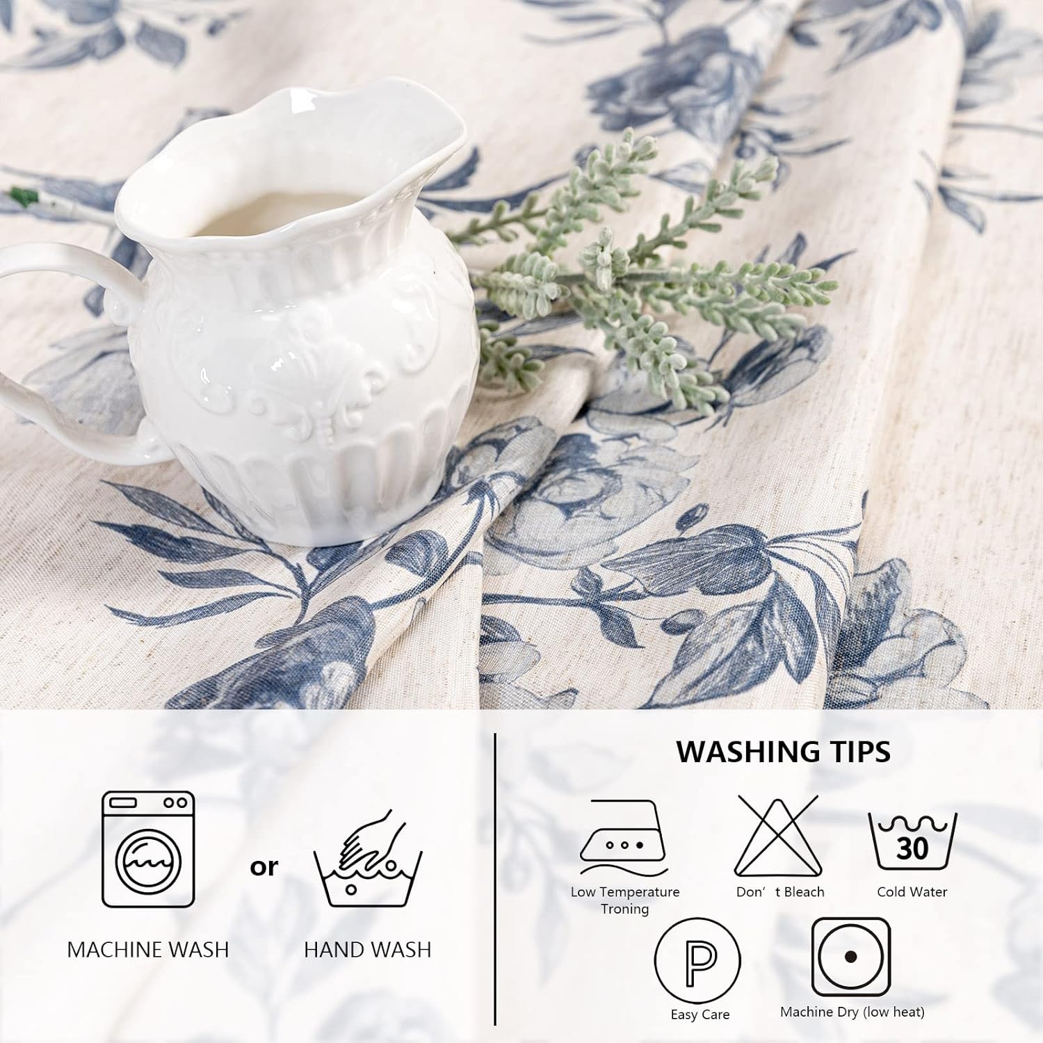 MYSKY HOME Rectangle Tablecloth 60x102 Inches, Linen Farmhouse Tablecloth Waterproof Decorative Fabric Table Cloth for Kitchen Party Floral Tablecloth for 6 Feet Table Blue and Grey Tablecloth