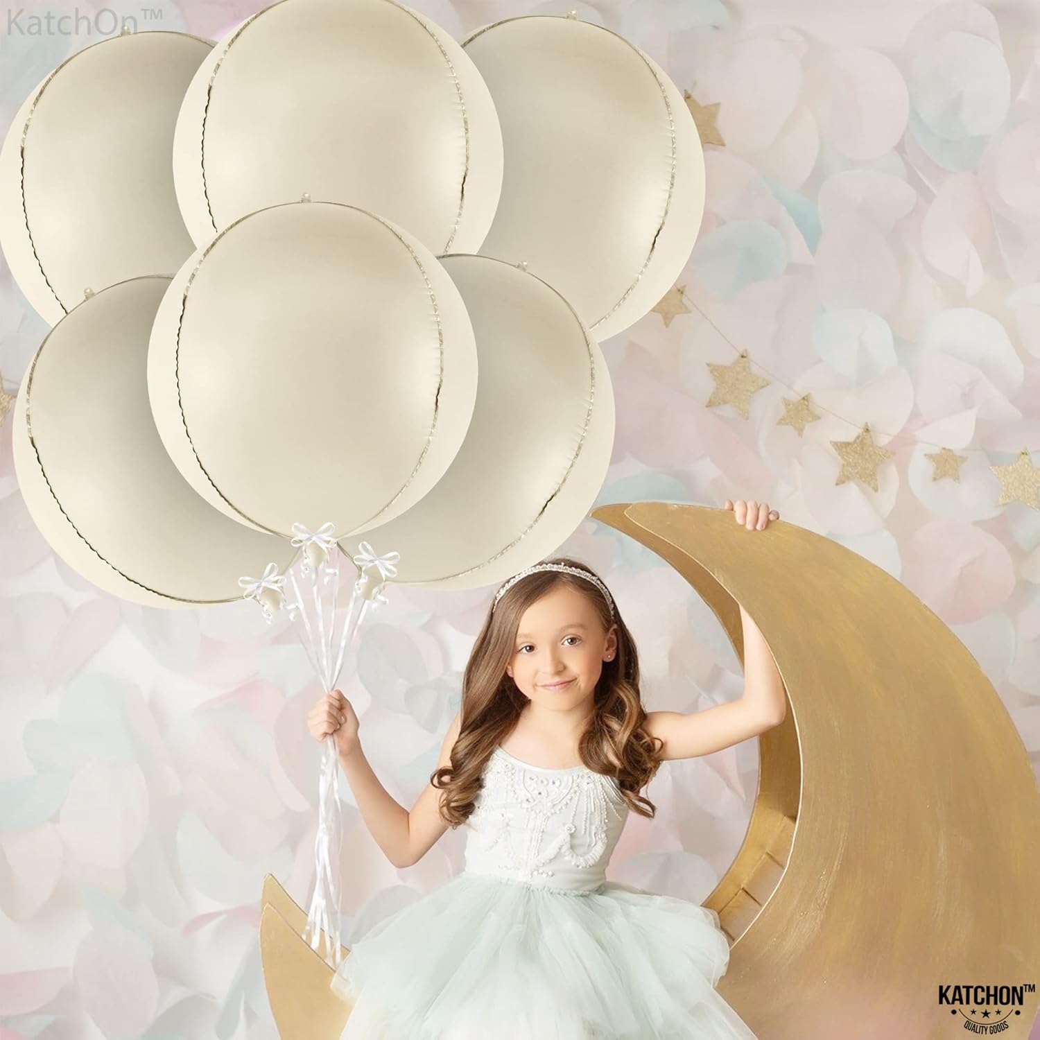 - BIG SIZE - 22 INCH | HELIUM SUPPORTED : Add elegance to boho party decorations or beige birthday decorations with 22" helium-supported Cream mylar balloons for teddy bear baby shower decorations. Neutral cream color balloons tone of big white baby shower balloon perfectly fits sand white balloons. White sand balloons for alone or mix blush balloons. White mylar balloons, white sand balloons or ivory balloons is best for weddings. Use this boho balloons for boho party decorations.
