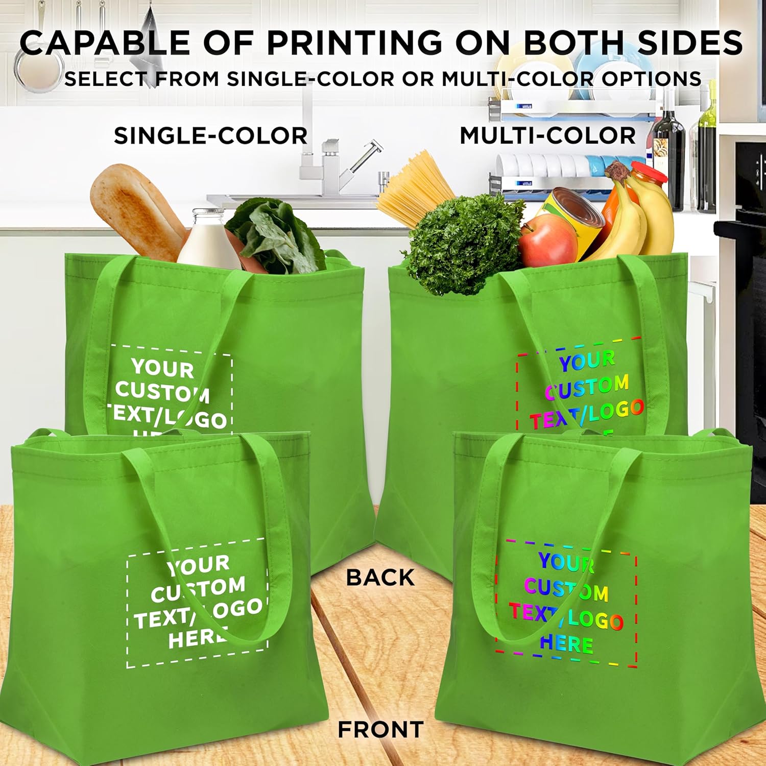 DISCOUNT PROMOS Custom Southern Style Grocery Tote Bags Set of 10 - Personalized Bulk Pack, Reusable Grocery & Shopping Bags - Great for Travel, Business Promotions - Lime Green - 20"X13"X8"