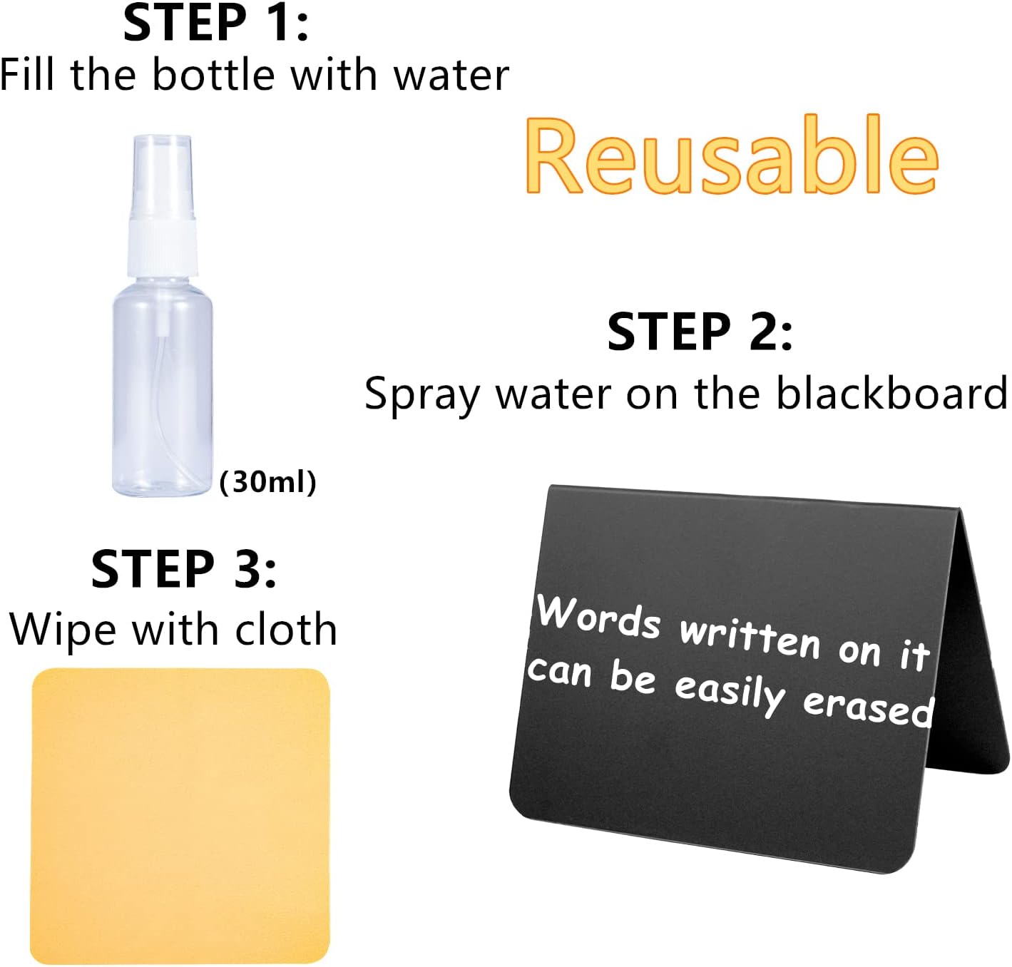 - Easy to Write & Erasable: 20pcs food signs for party buffet, 12 colors of water-based chalk (These mini blackboard match the pen perfectly) , equipped with bottles and cleaning cloth, you can use them to wipe clean easily, they can be reused