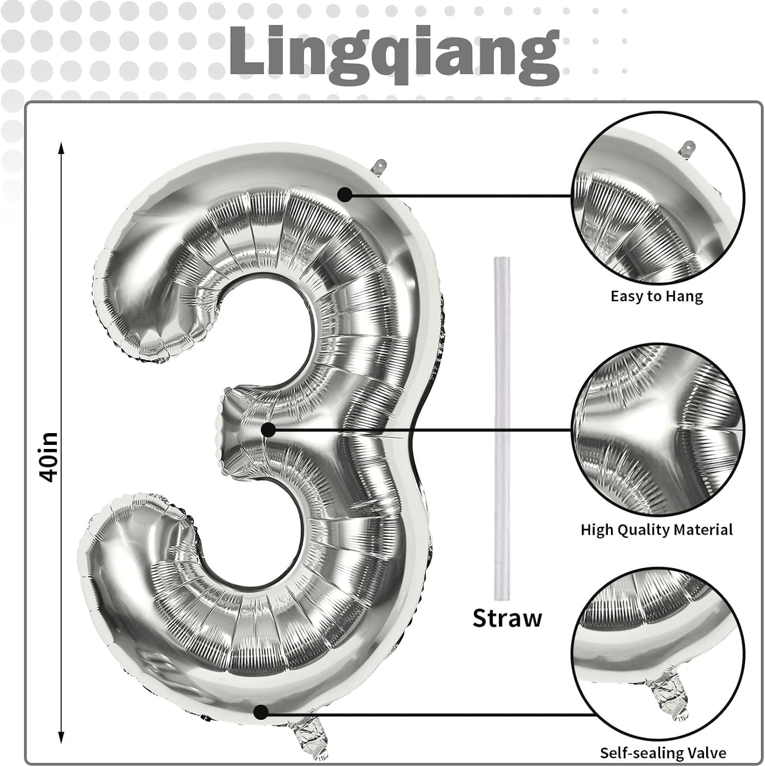 - 🎉 Silver Number 3 Balloon 🎉 - You will get 1pc 40 inch mylar foil number 3 balloon and 1pc straw. Perfect for 3rd 13th 30th 35th birthday or anniversary party decorations supplies.
