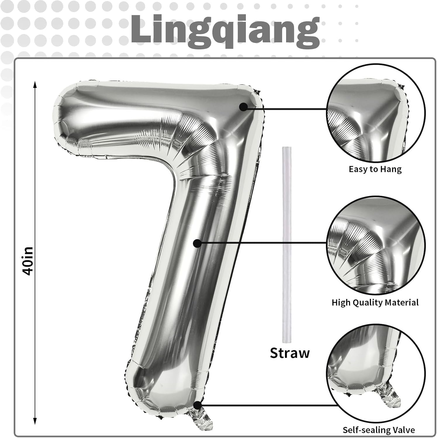 - 🎉 Silver Number 7 Balloon 🎉 - You will get 1pc 40 inch mylar foil number 7 balloon and 1pc straw. Perfect for 7th 17th 27th 70th 75th birthday or anniversary party decorations supplies.