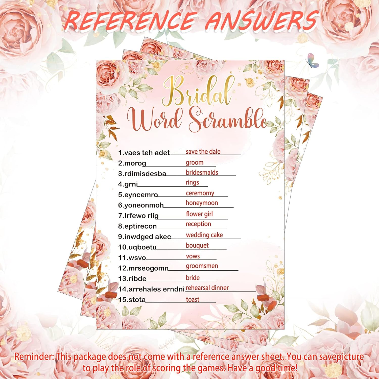 - 5 Styles of Fun Bridal Shower Games: our game bridal shower cards contain 5 fun games, including "Would She Rather", "Bride Or Groom Guess Who", "Bridal Word Scramble", "Wishes For The Bride And Groom", "What's In Your Purse"; These cards provide your guests with a fun wedding game to help them fully enjoy the party and elevate the mood