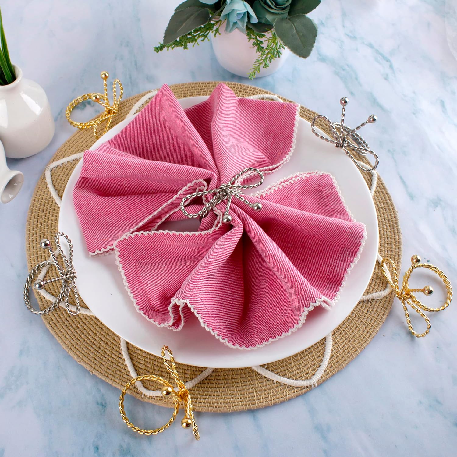 - ✅ Constructed from Heavy-Duty Metal: These durable napkin ring holders resist bending and fading, ideal for frequent formal events.