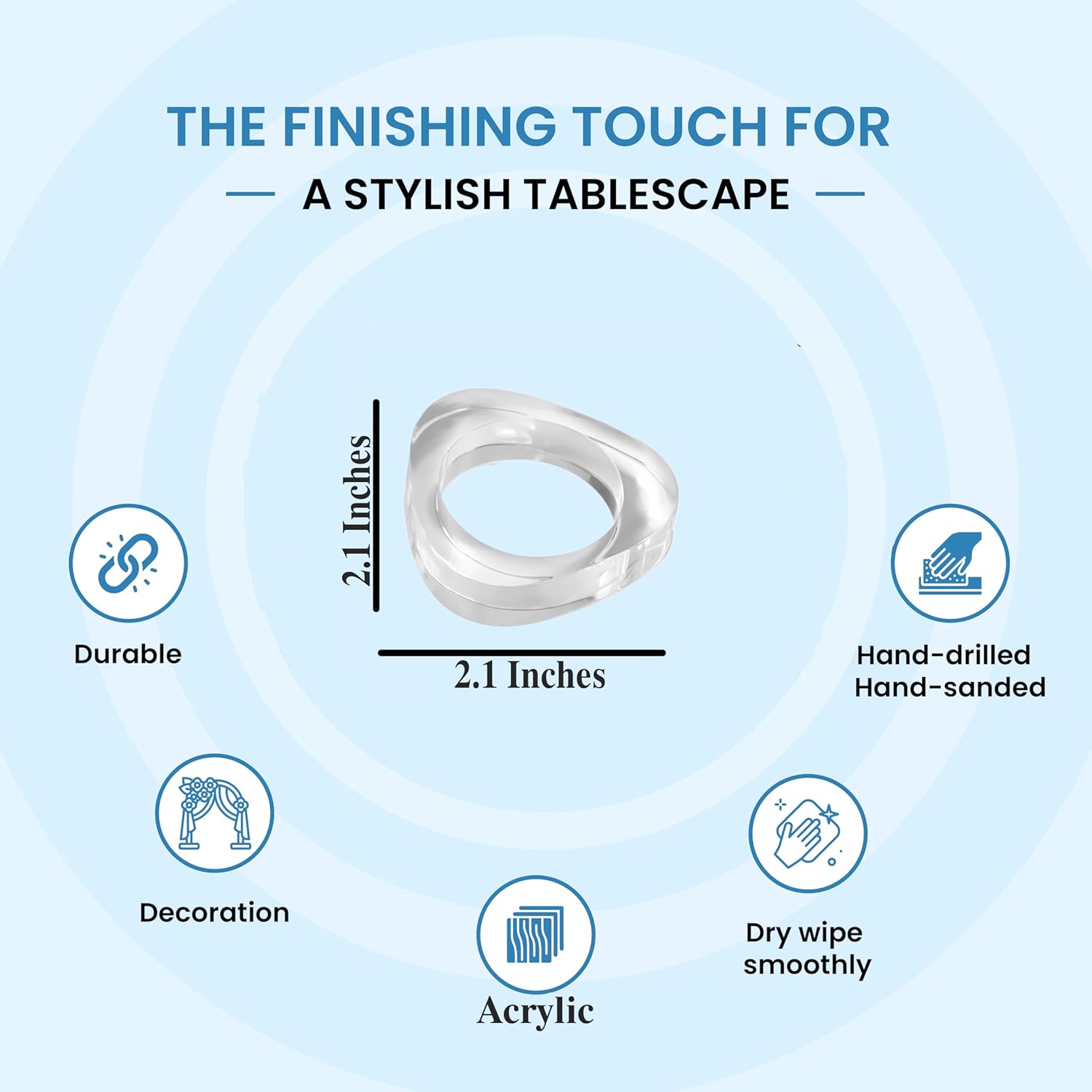 - ✅ PERFECT FOR EVENTS, DINNERS & GIFTING: Whether you're setting a wedding table, organizing a holiday feast, or simply hosting guests, these clear napkin rings add polished charm. A thoughtful pick for event planners, housewarmings, or hostess gifts.