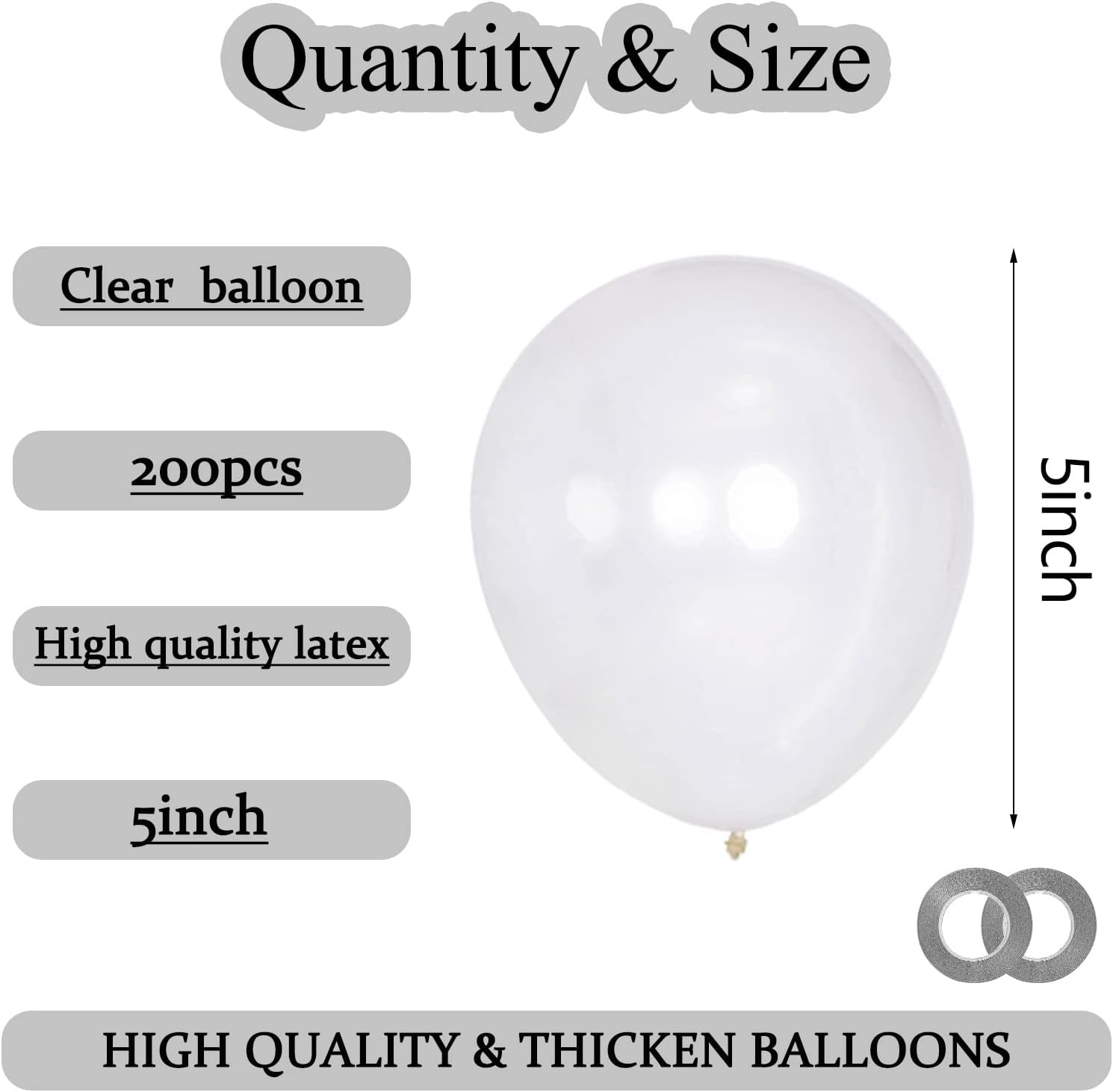 KAWKALSH 200pcs Clear Balloons 5 Inch, Small Mini Latex Balloons for Party Birthday Baby Shower Anniversary Festival Arch Garland Decoration
