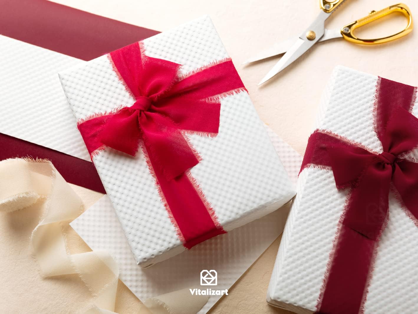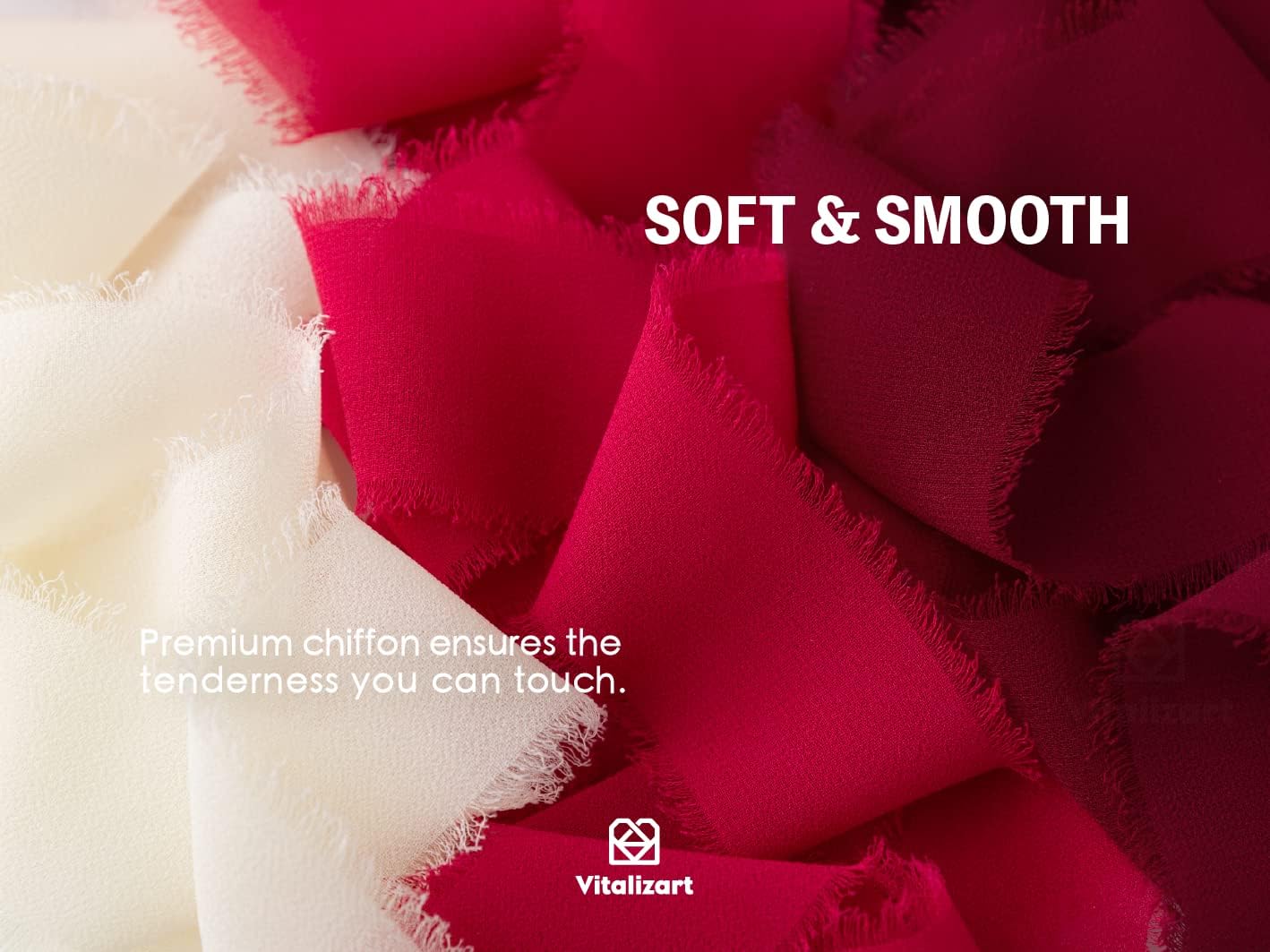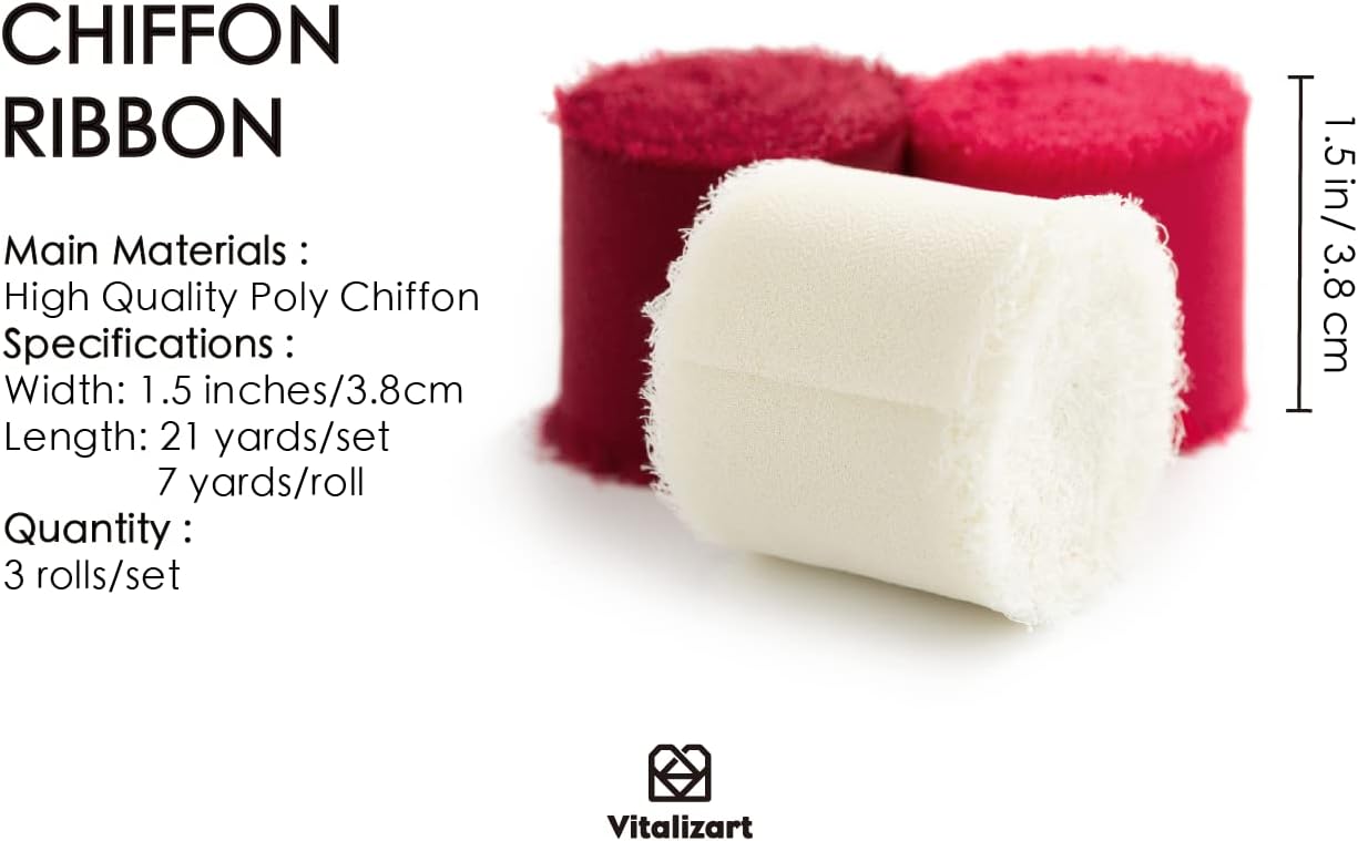 Vitalizart Red Handmade Chiffon Silk Ribbon Fringe 1.5" x 21 Yd Frayed Edges Ribbons for Wedding Invitations Bridal Bouquets Gifts Wrapping Crafts Holiday Party Decorations