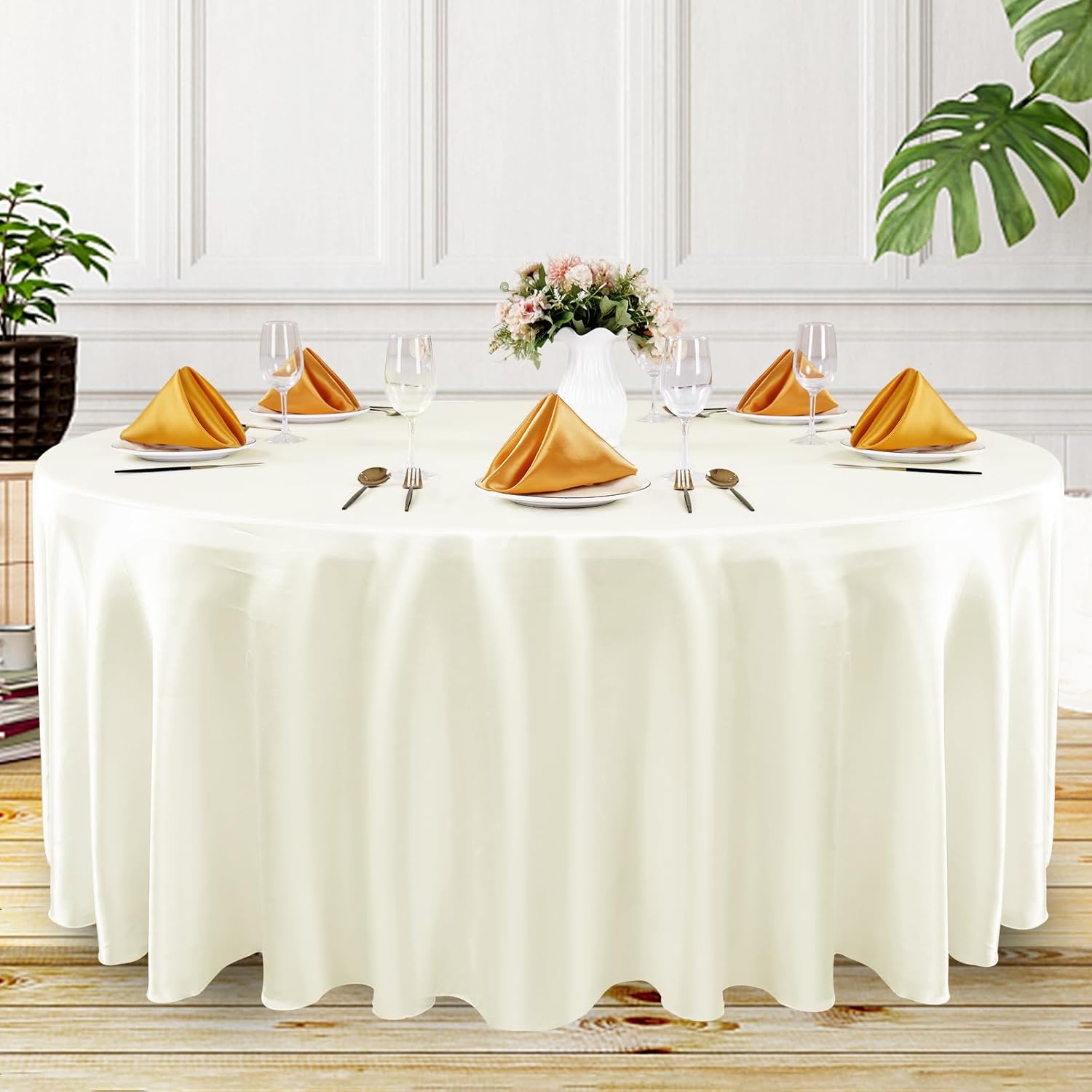 fani 6 Pack 108 Inch Ivory Round Tablecloth - Premium Silky Satin Tablecloth Overlay Smooth Fabric Table Cover Linens, Table Decoration for Wedding Party Banquet Events Restaurant Kitchen Dining