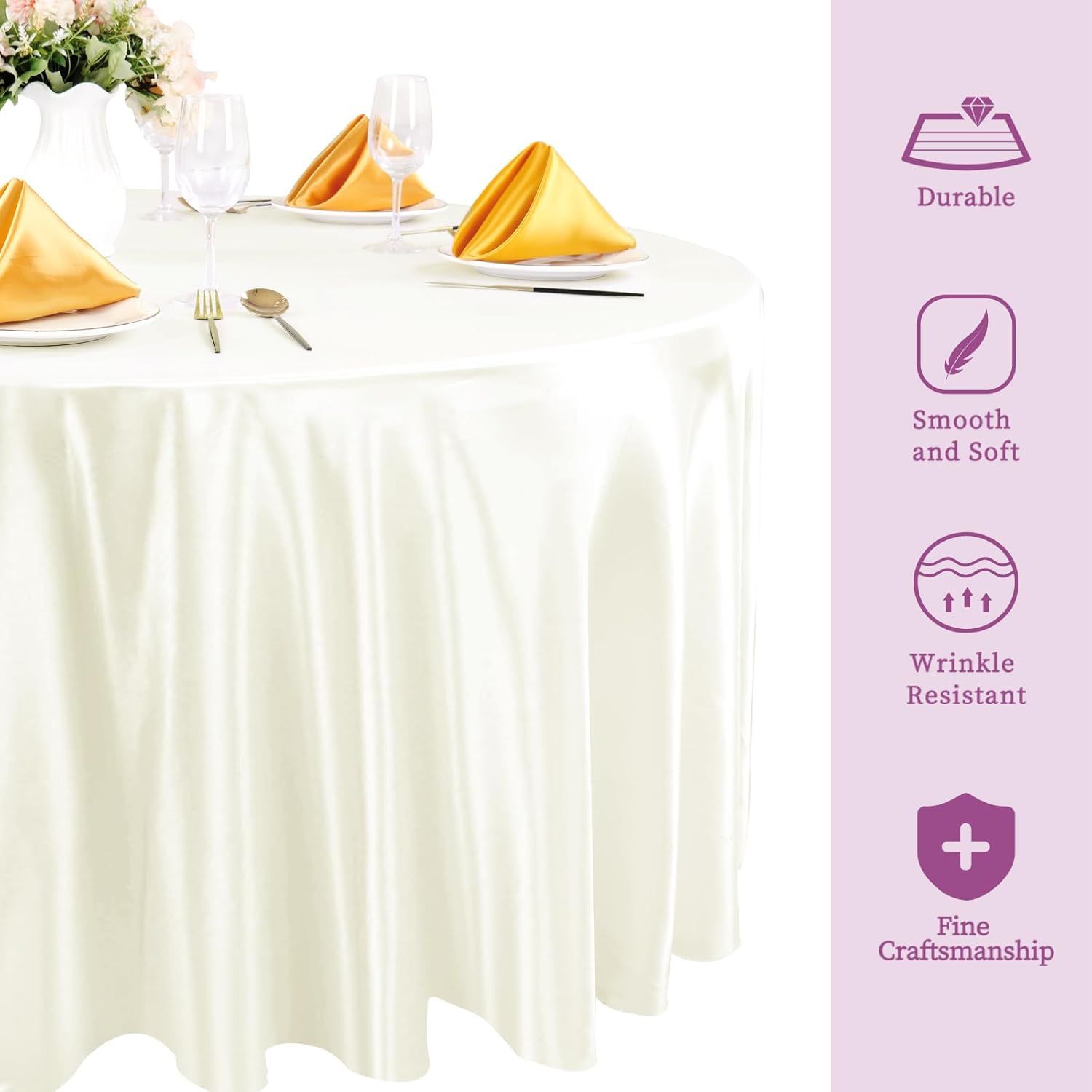 - 【Package Includes】6 Pieces premium Ivory satin round tablecloth. The size of silk satin table cover is 120 inches. It is suitable for most household round tables and can meet your different needs. Sufficient quantities are sufficient for party events to enhance the charm of your event decoration. The tablecloth size is usually larger than your table size. Please measure your table size before buying.