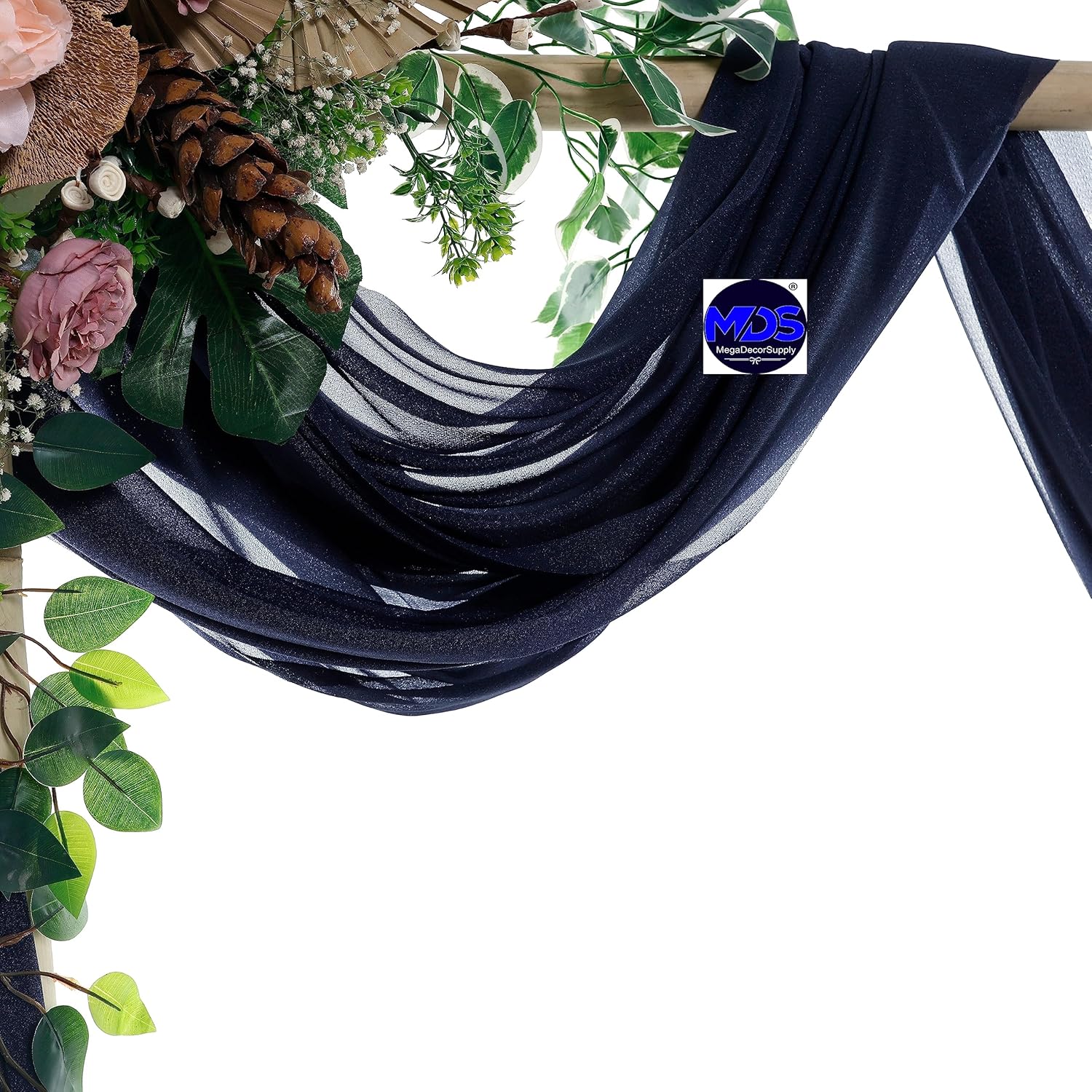 - CONTAINS : Pack of 1 PC. Each panel is 30 Inch (Wide) x 20 Feet (Long). Thermal cutting no seaming technique. Seamless, one-piece design. Each panel is cut entirely from one single piece of fabric. It is perfect length for arch either round or rectangle for a elegant puddle drop. Soft and overhanging pendants make the wedding decorations more popular.This chiffon drapery backdrop can help your party to create a warm and elegant scenes.