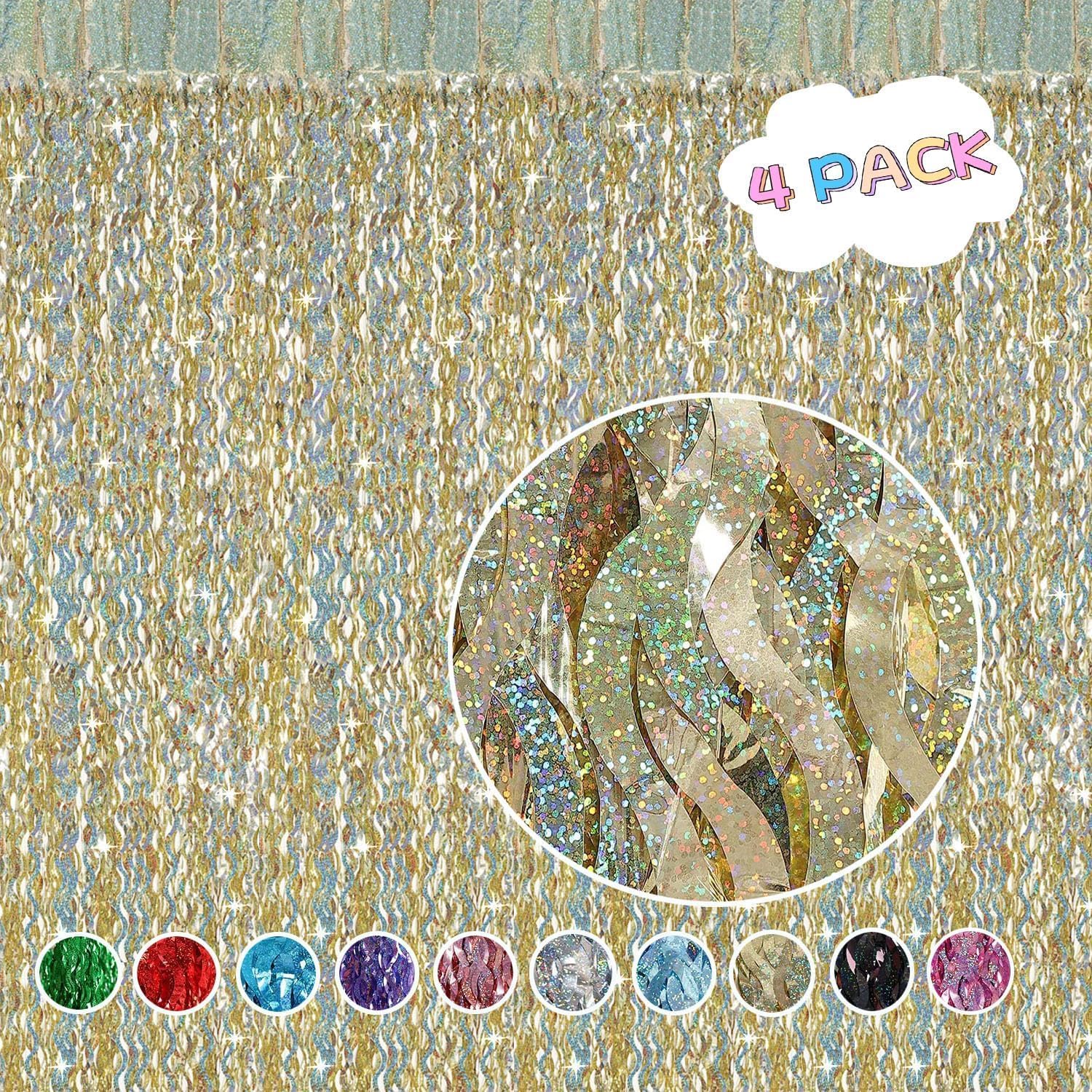 - Packing Included:4 packs tinsel foil fringe curtains party photo backdrop,Each pack curtains size is 3.3ft x 6.6ft, enough length for decorate your party