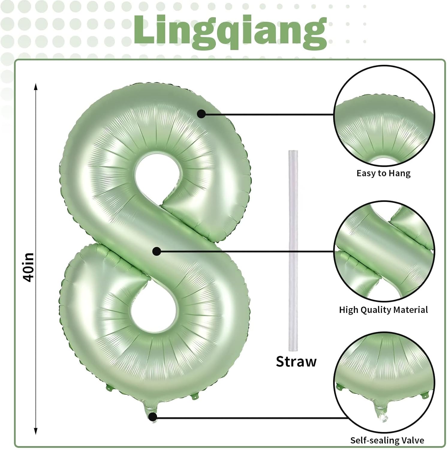 - 🎉 Sage Green Number 8 Balloon 🎉 - You will get 1pc 40 inch mylar foil number 8 balloon and 1pc straw. Perfect for 8th 18th 28th 80th 85th birthday or anniversary party decorations supplies.