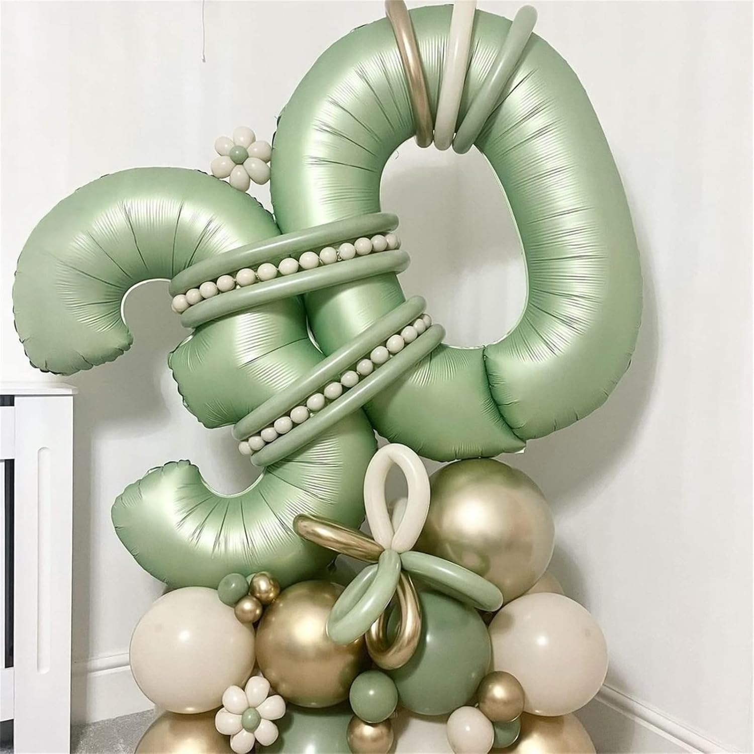 - 🎉 Easy to Inflate 🎉 - The big sage green number 8 foil balloons have self-sealing valve does not need to be knotted for easy inflation and deflation. It can be inflated with air or helium. When filled with helium, the balloons can float in the air; after filling, press the valve of the digital balloon to seal it. It can be reused. Do not throw away after use!