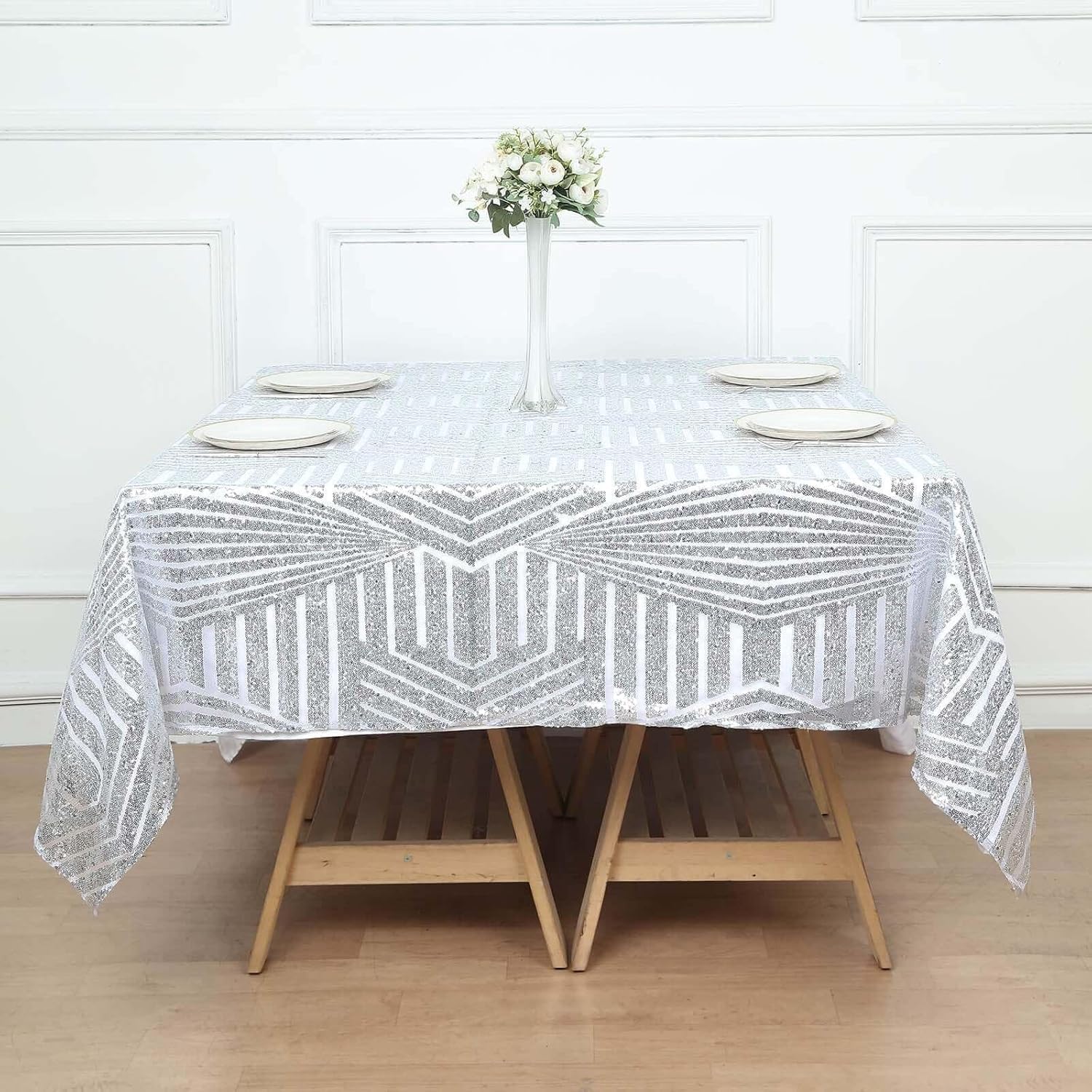 Efavormart 72" Silver Sparkly Sequin Geometric Tulle Square Table Overlay