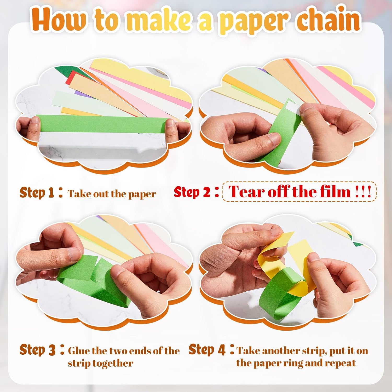 - Simple to Operate: using these colorful paper chain strips is very easy, you just need to stick the 2 ends of the paper together with the attached tape, match the color as you like, ring by ring, and you will get an exquisite and personalized handicraft, without complex or dangerous procedures