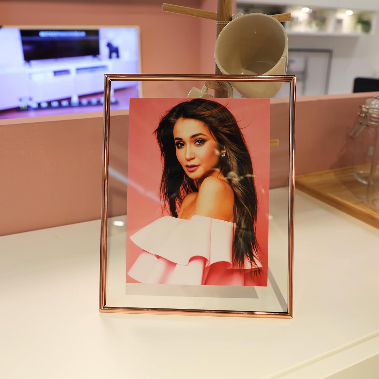 - 【Simple Design】This picture frame consists of a rose gold metal frame and 2 pieces of transparent glass. The innovative hidden heart-shaped stand design won't overwhelm the crowd and bring the photo back to the photo, making it looks very simple and elegant.