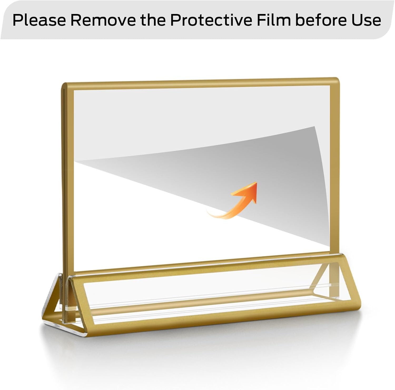 - 【What You Get】Pack of 8 gold acrylic sign holder with 8 horizonal stand, sufficient quantity can fully display any items you want to display. The clear acrylic sign holder with gold border measures 7x5 inch which can display pictures or documents.