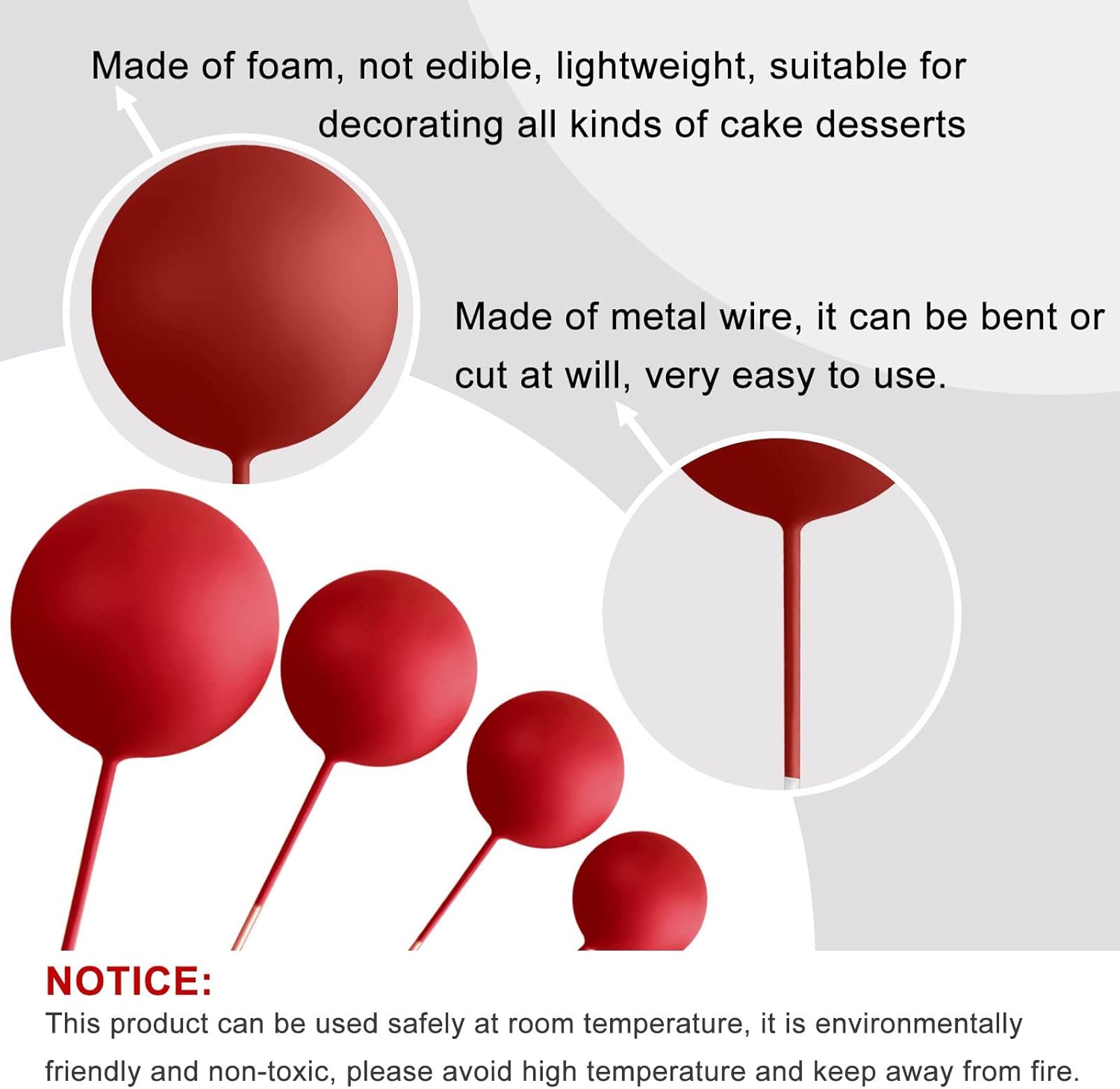 ASTARON 32 Pcs Ball Cake Topper Decorations Mini Balloons Cake Topper Sticks Foam Balls Cake Picks for Graduation Wedding Party Birthday Cake Decorating (Red Black)