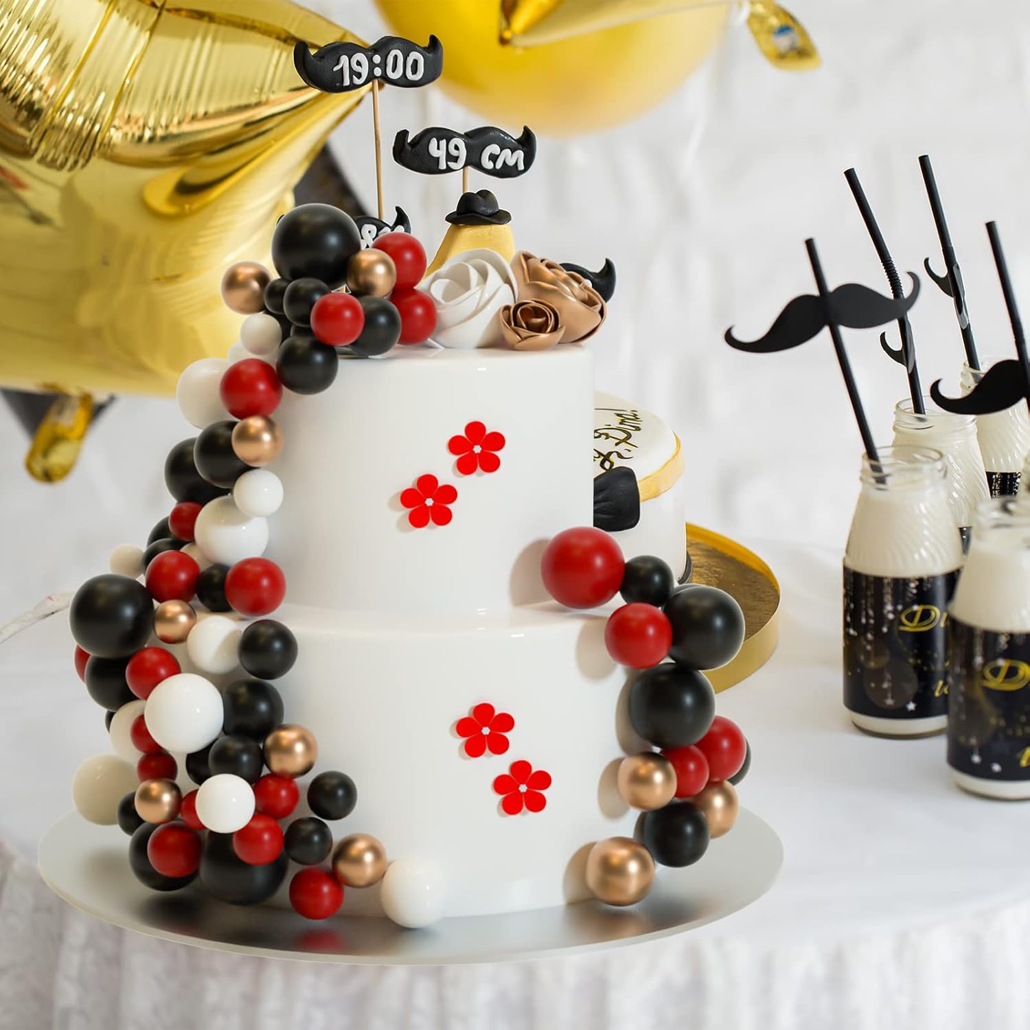 - Package includes: 32 pcs balls cake decorations with different colors and Sizes. They are gold, white, red, black colors as picture showed, 8 pieces of each color.