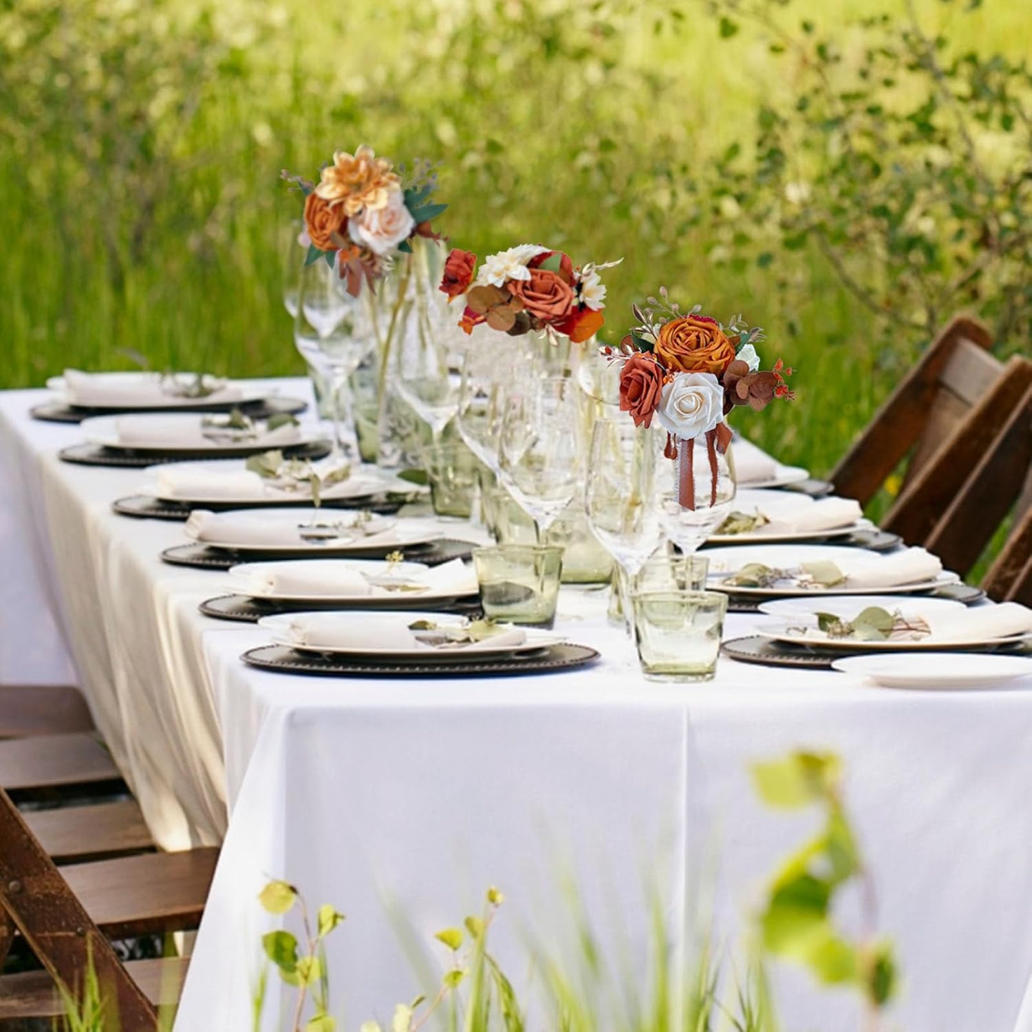 CherishedMoments Set of 6 Assorted Flower Centerpieces Mini Floral Wedding Flowers Set for Fall Wedding Table Centerpieces Decoration, Burnt Orange Bouquets and Home Decor