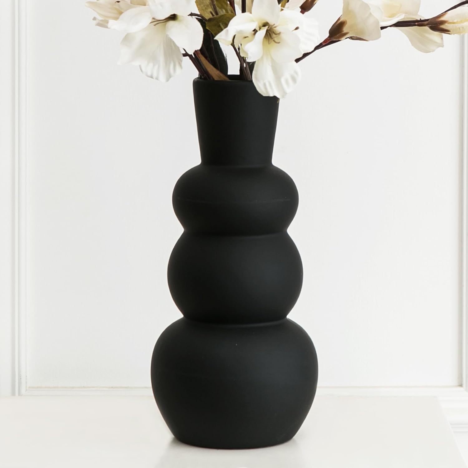Black Vase, Modern Ceramic Vase, Black Matte Clay Vases for Pampas Grass, Minimalist Home Fresh Flowers, Dried Flowers