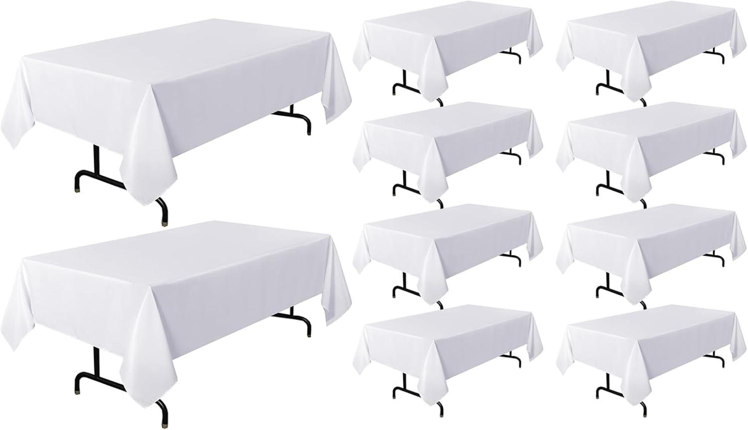 sancua 10 Pack White Tablecloth 60 x 102 Inch, Rectangle Table Cloth for 6 Feet Tables - Stain and Wrinkle Resistant Washable Polyester Table Cover for Dining Tables, Buffet Parties and Camping