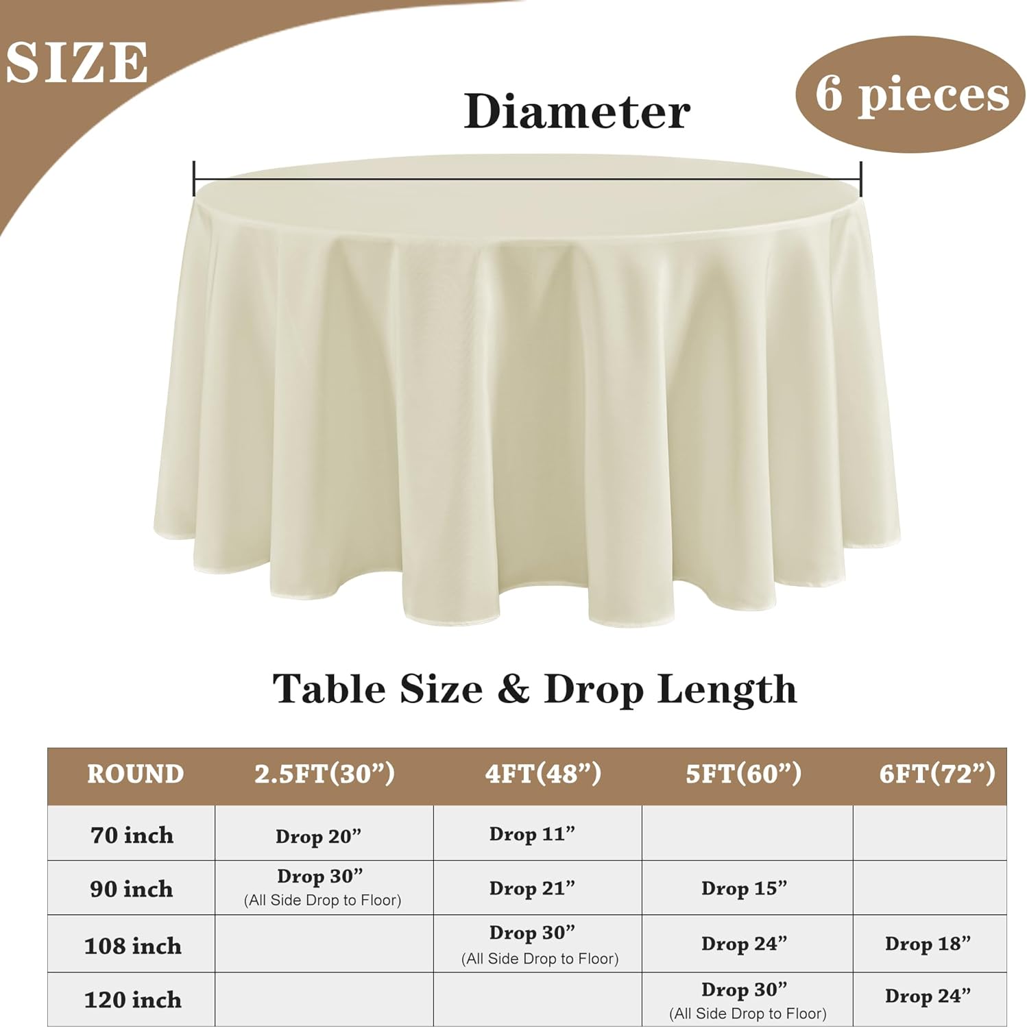 - Versatile Size Options: Whether you have a rectangular, square, or round table, we've got you covered. Each package includes 6 pack of table clothes in various sizes to fit your needs perfectly.