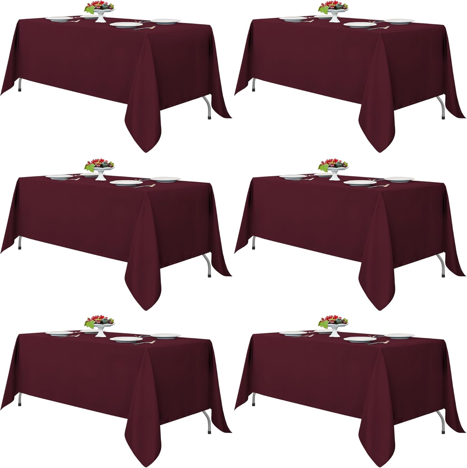 Fitable Burgundy Tablecloths for 6-8 Foot Tables, 6 Pack - 70 x 120 Inches - Reusable and Washable Table Clothes, Polyester Fabric Table Covers for Wedding, Party, Banquet