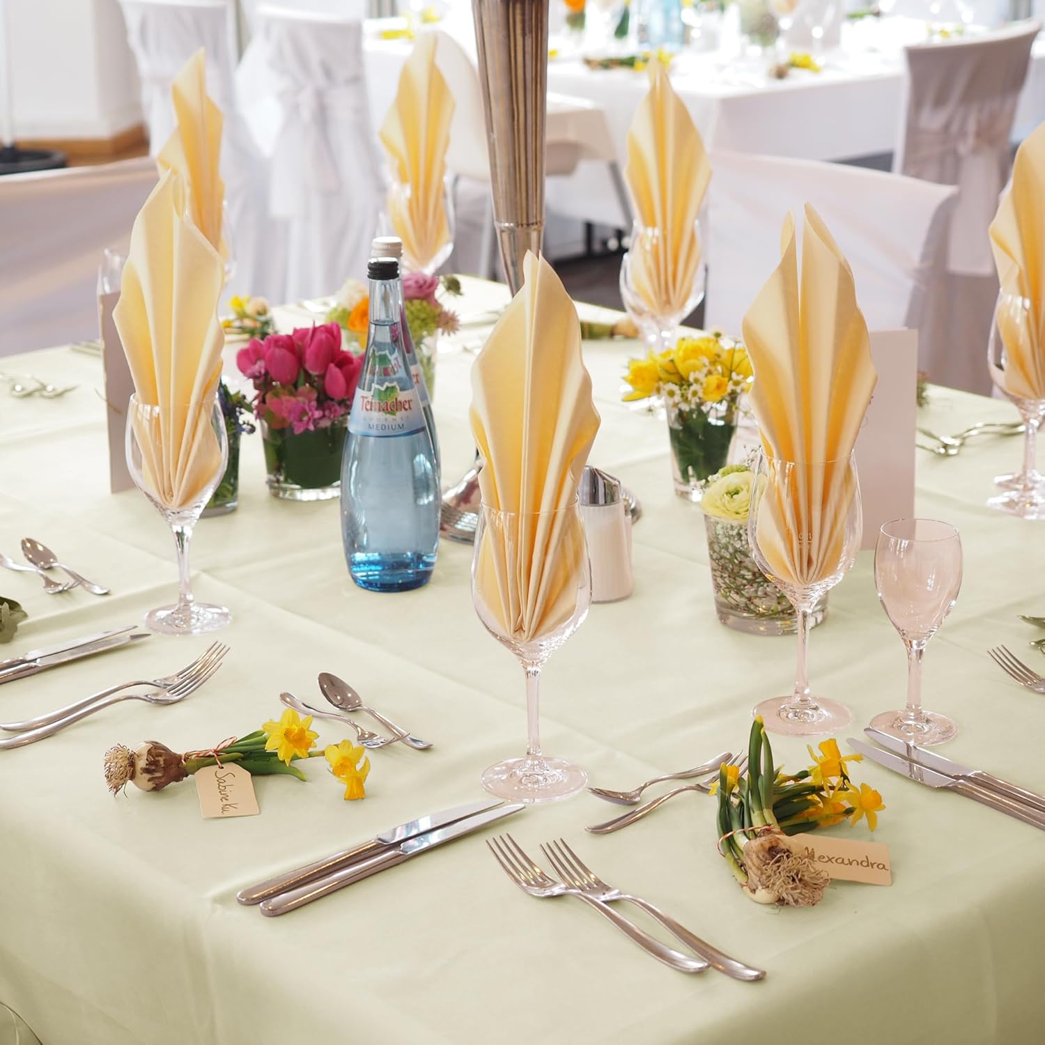 - Easy Care Instructions: Our table covers are machine washable for quick and convenient cleaning. Simply tumble dry on low and use low heat ironing to maintain their pristine appearance.